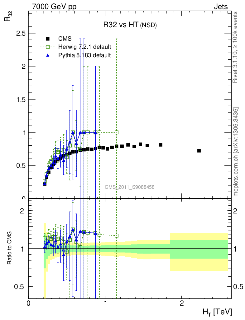 Jets : Jet Multiplicities : R32 vs HT