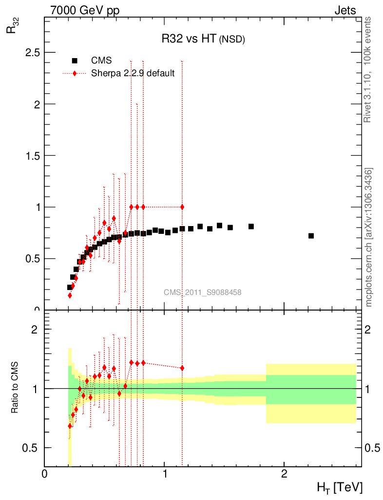 Jets : Jet Multiplicities : R32 vs HT
