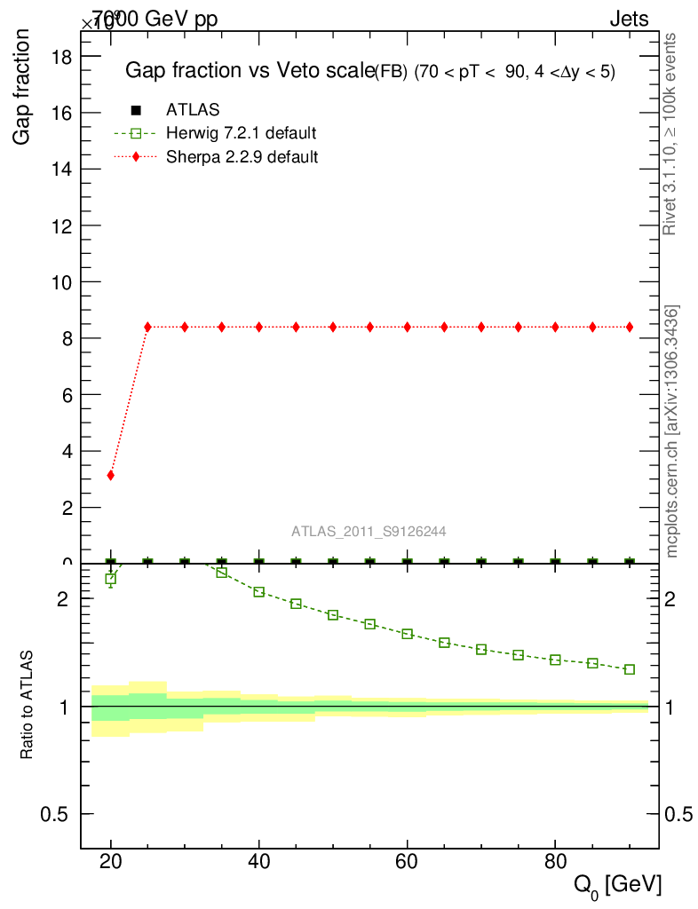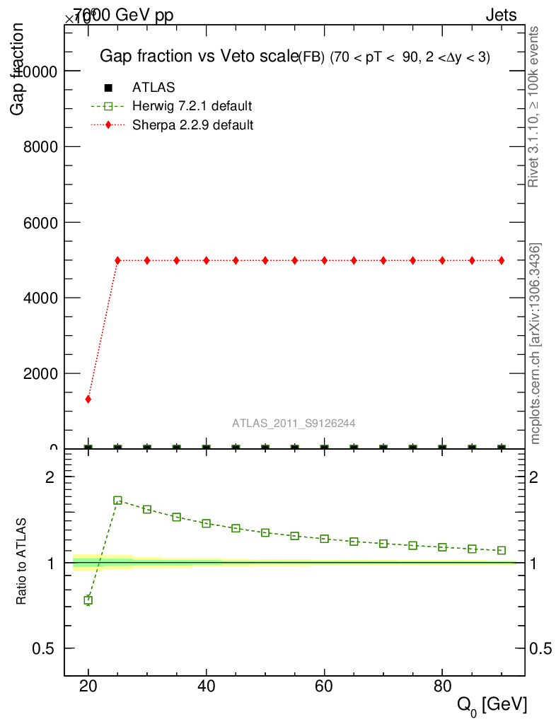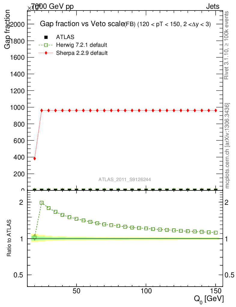 Jets : Jets + Veto : Gap frac. vs Veto scale (FB)