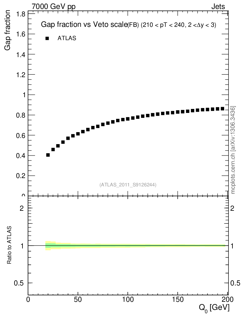 Jets : Jets + Veto : Gap frac. vs Veto scale (FB)