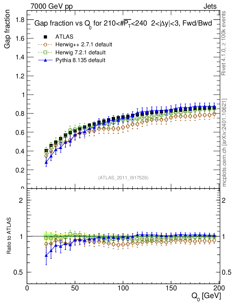 Jets : Jets + Veto : Gap frac. vs Veto scale (FB)
