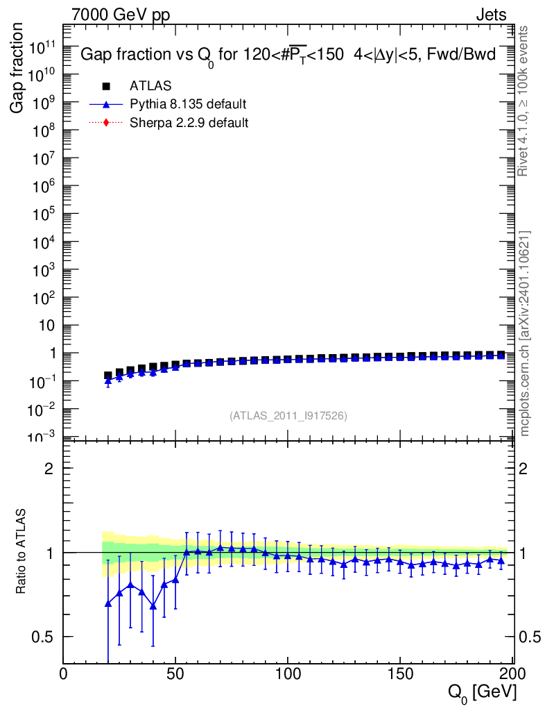 Jets : Jets + Veto : Gap frac. vs Veto scale (FB)