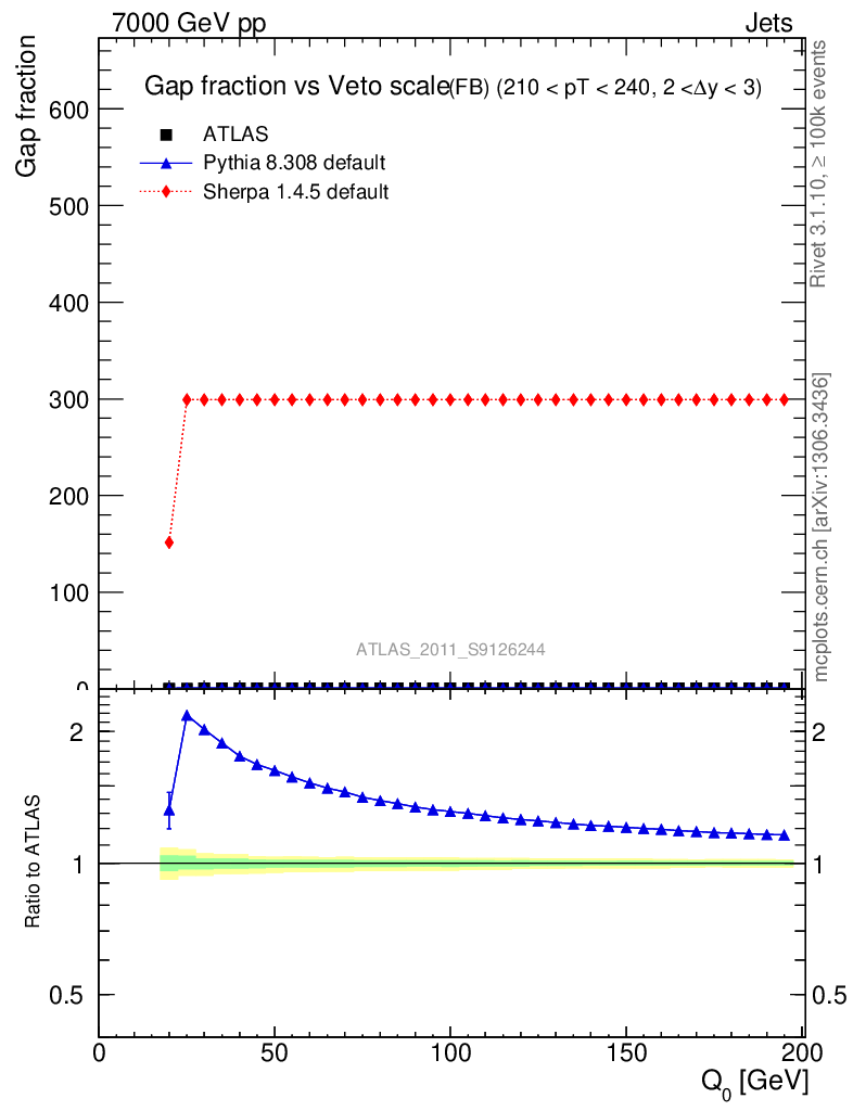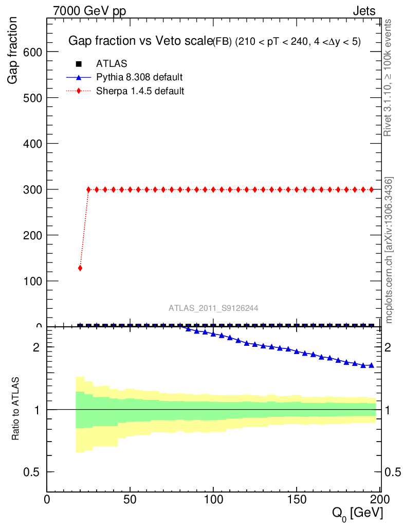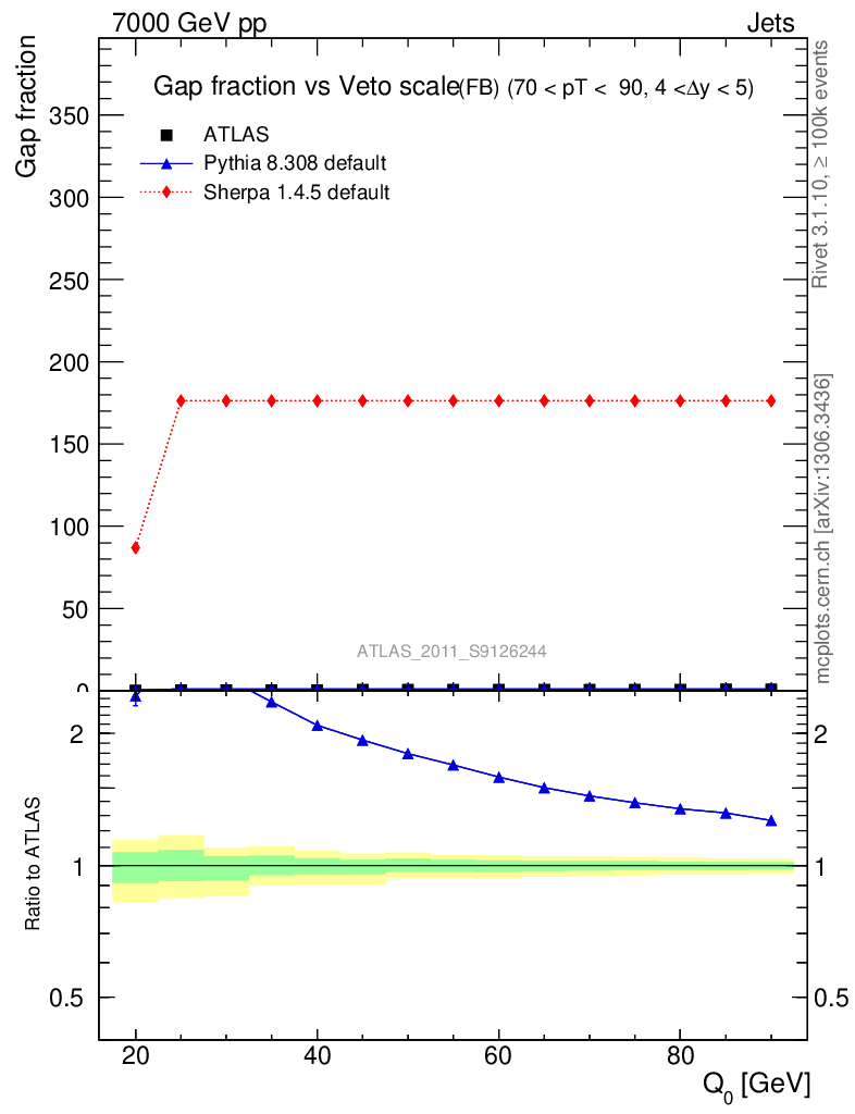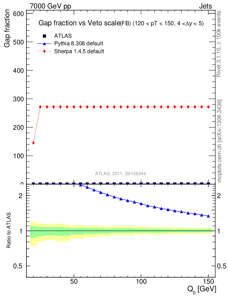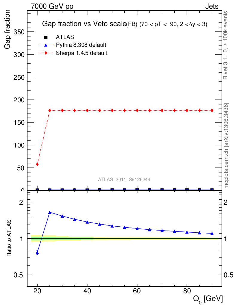 Jets : Jets + Veto : Gap frac. vs Veto scale (FB)