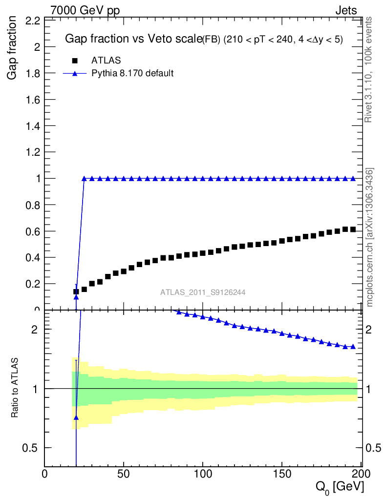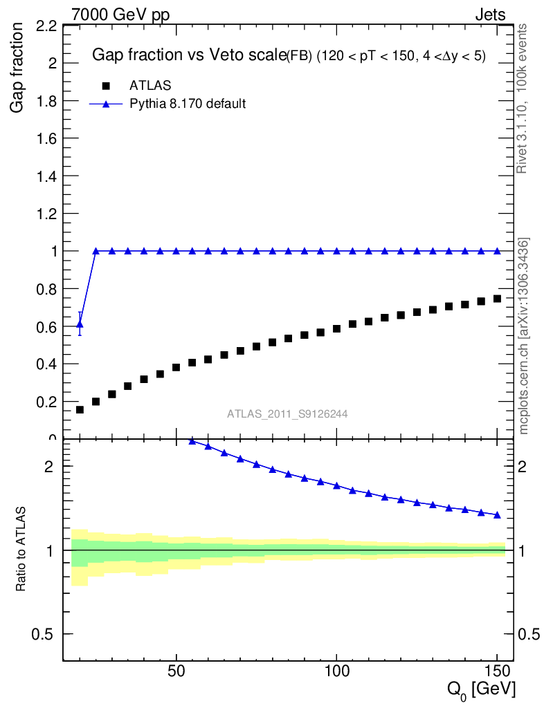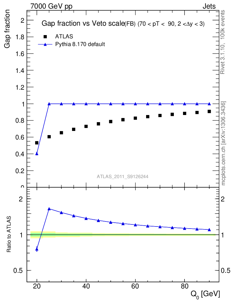Jets : Jets + Veto : Gap frac. vs Veto scale (FB)