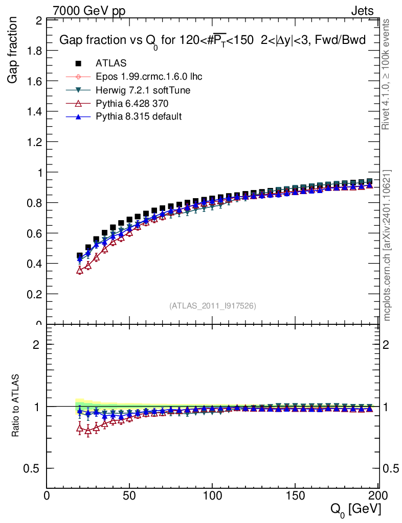 Jets : Jets + Veto : Gap frac. vs Veto scale (FB)