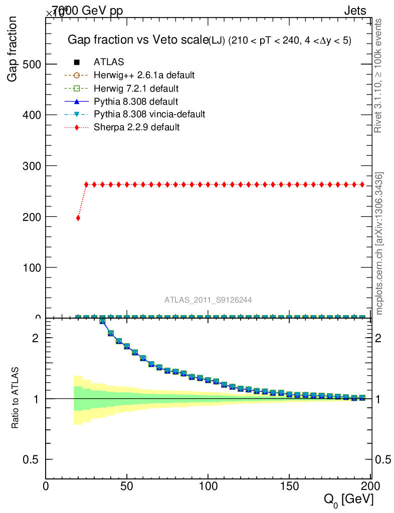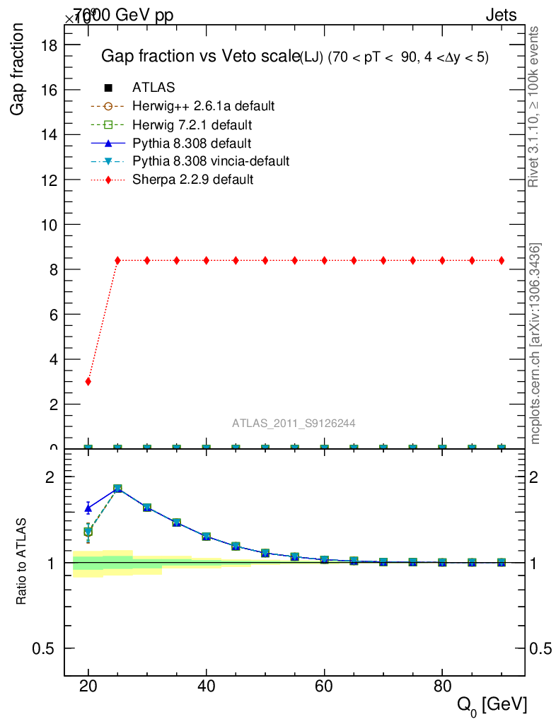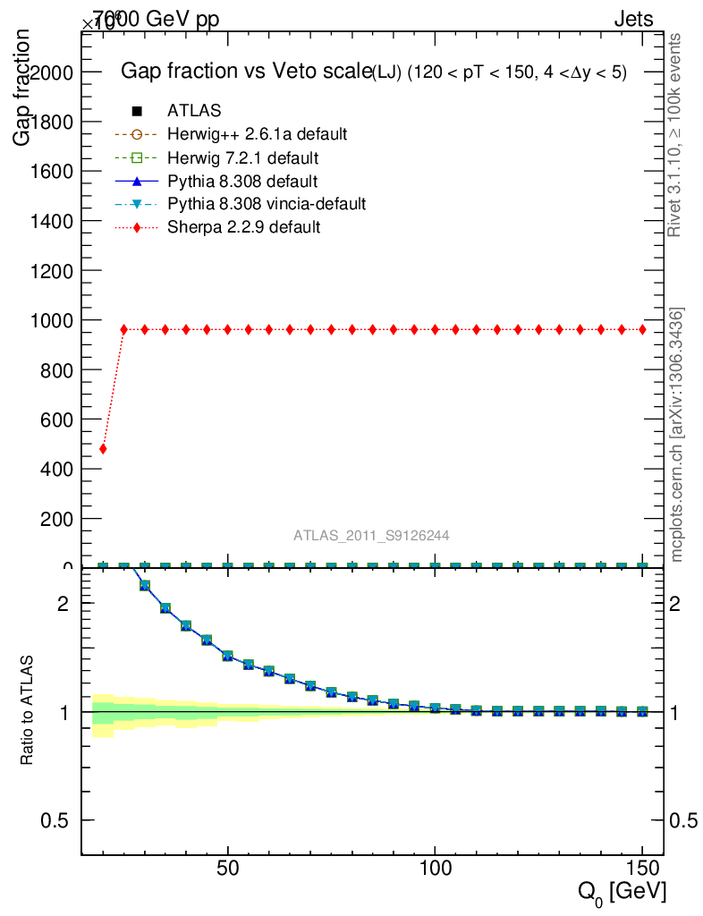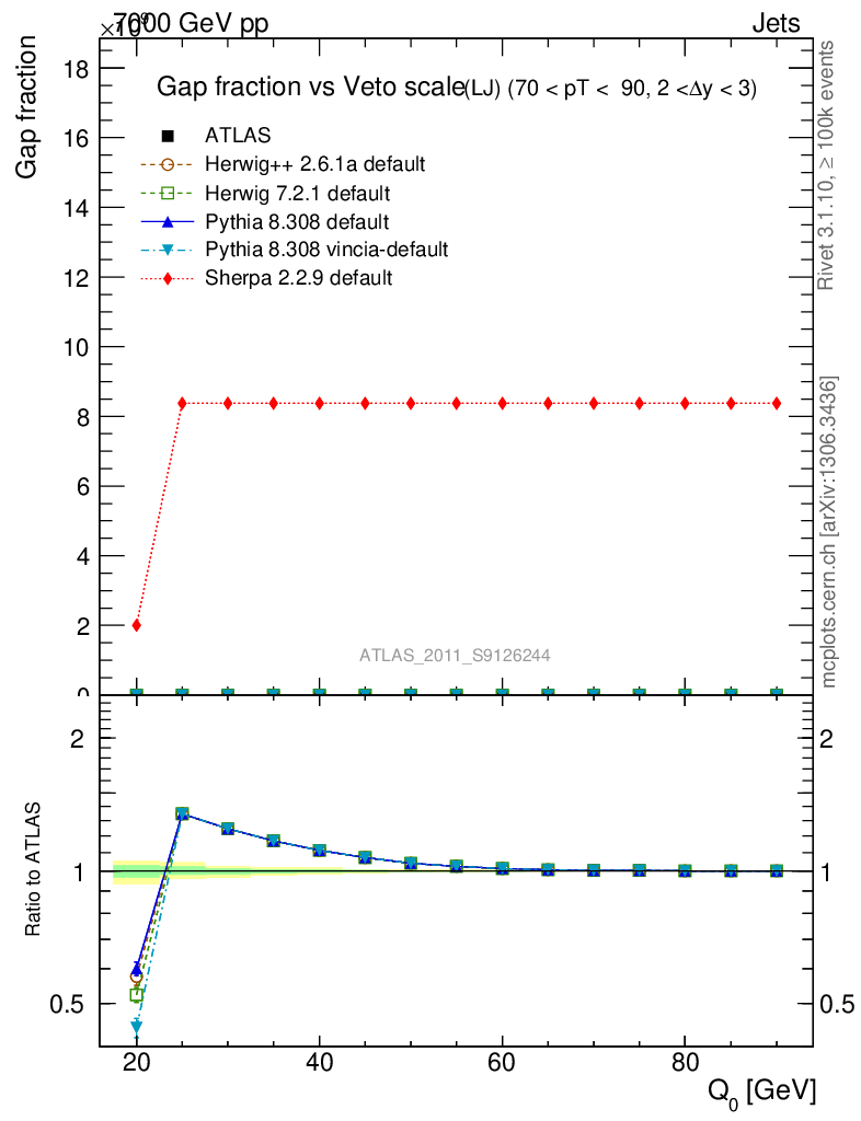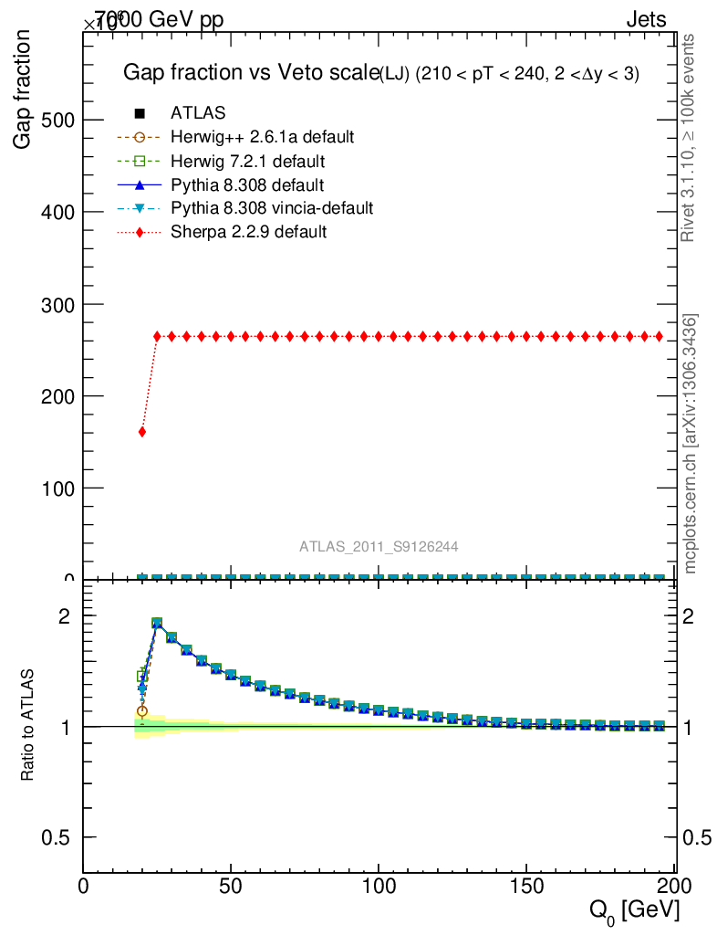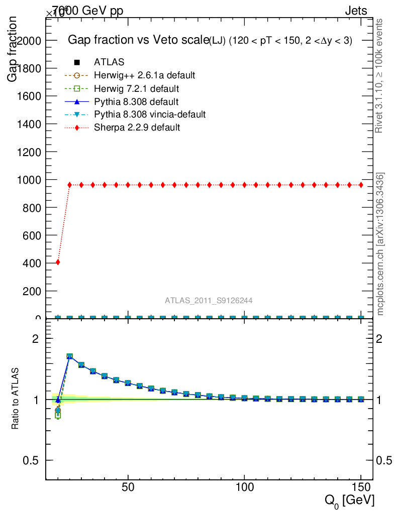 Jets : Jets + Veto : Gap frac. vs Veto scale (LJ)