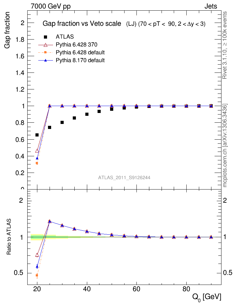 Jets : Jets + Veto : Gap frac. vs Veto scale (LJ)