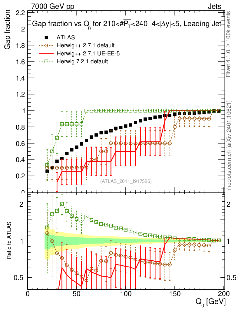 Jets : Jets + Veto : Gap frac. vs Veto scale (LJ)