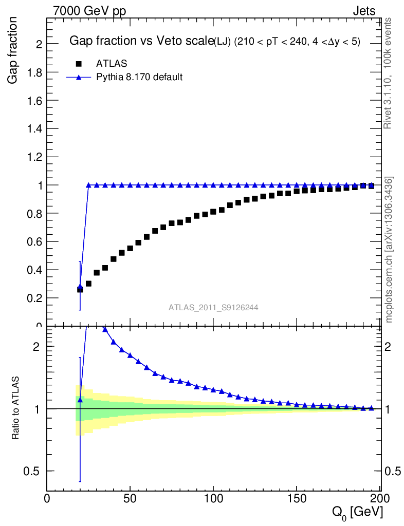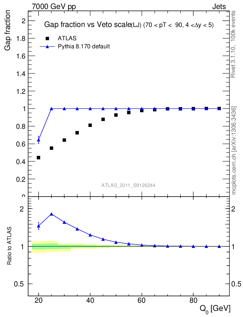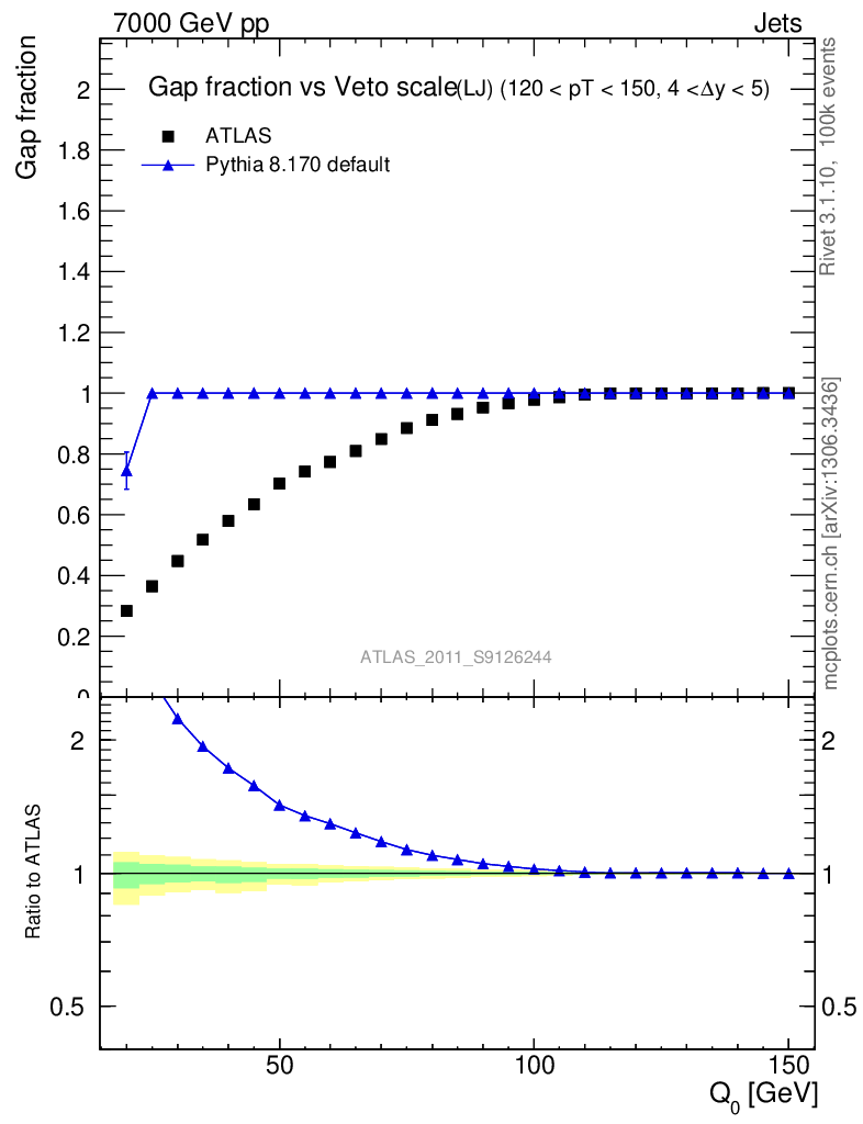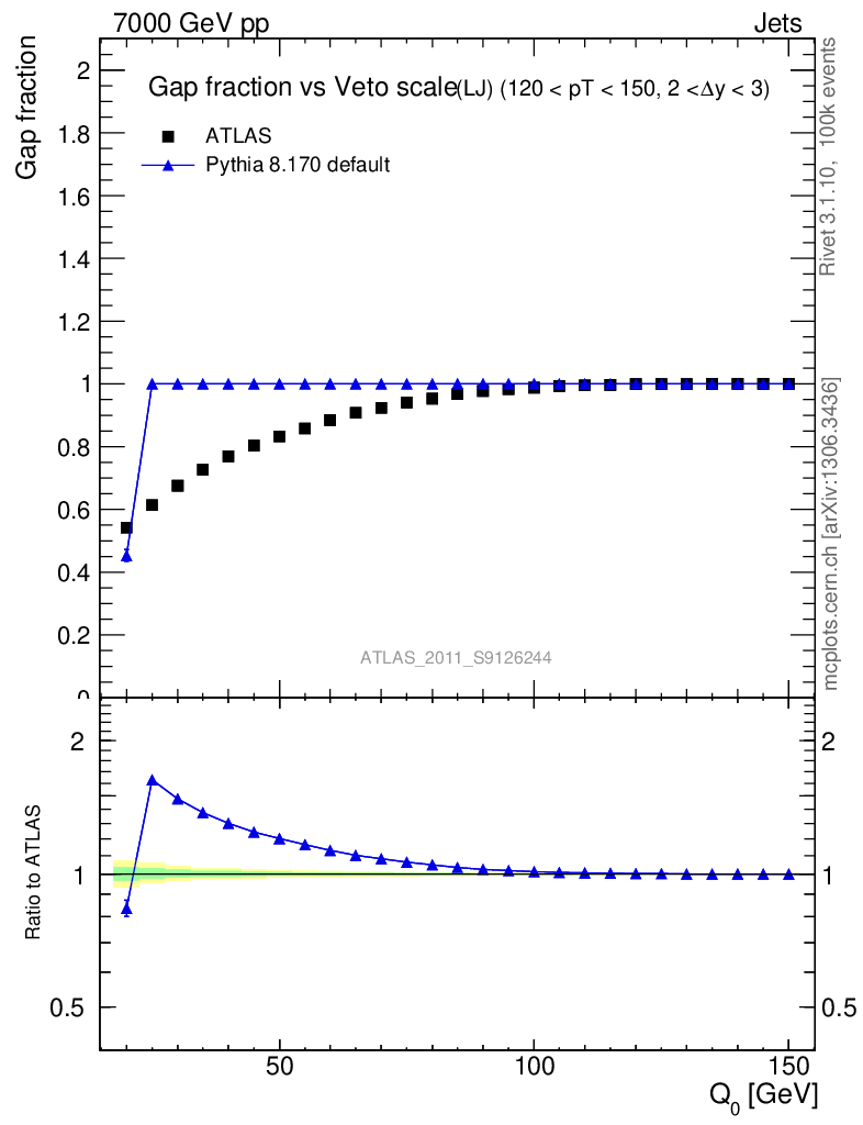 Jets : Jets + Veto : Gap frac. vs Veto scale (LJ)