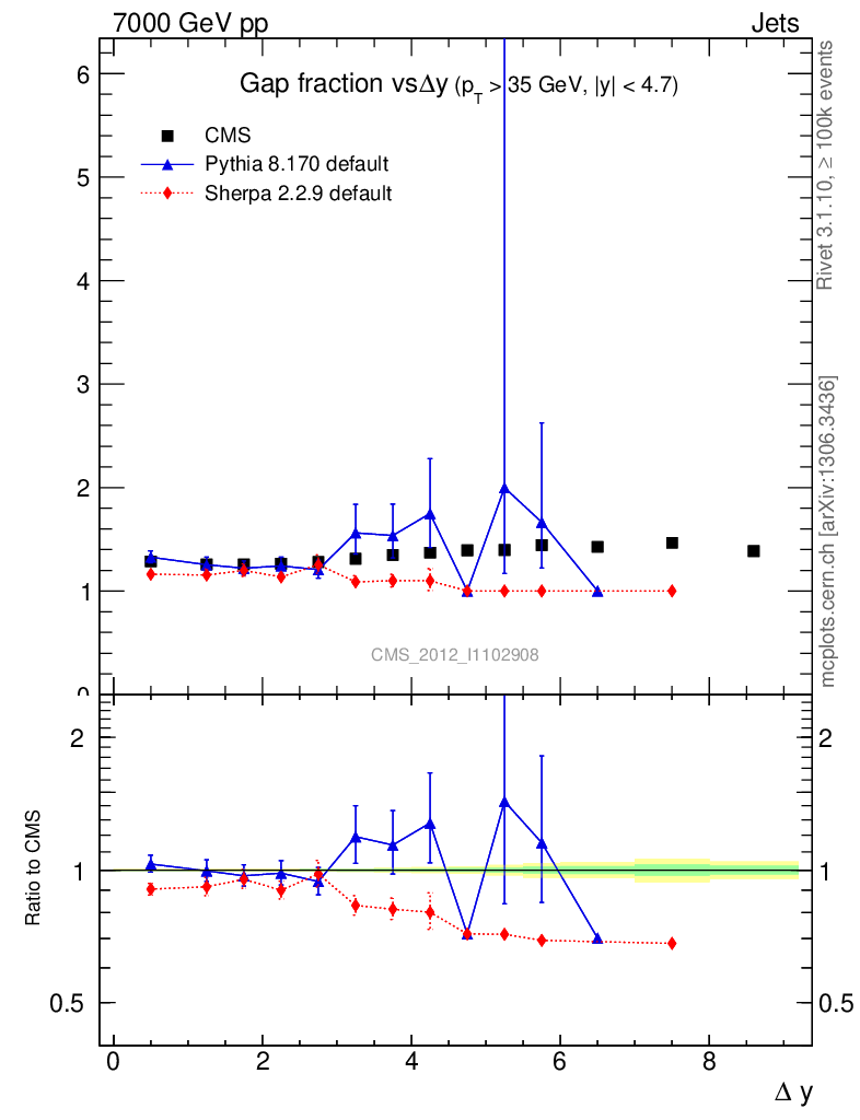 Jets : Jets + Veto : Gap fraction vs Δy