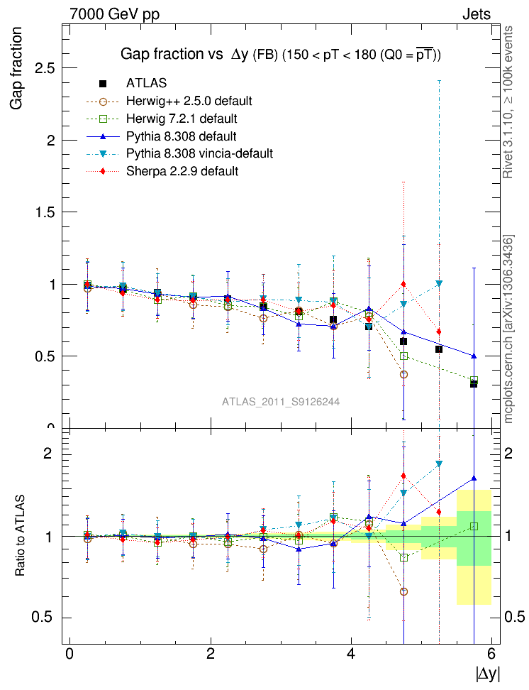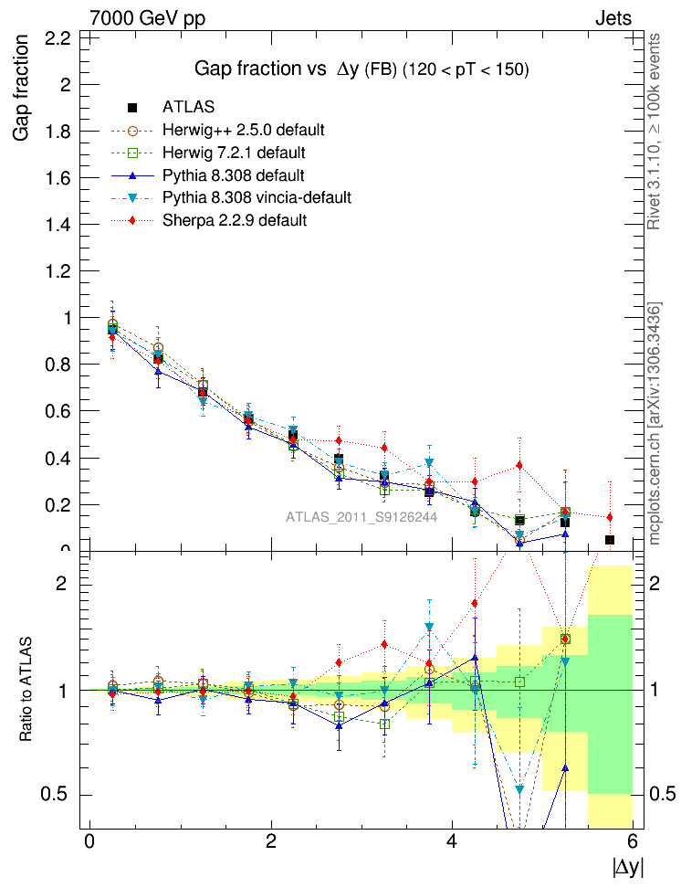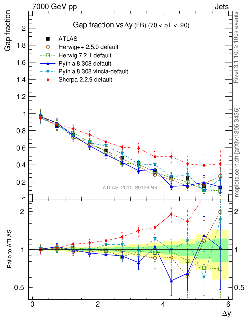 Jets : Jets + Veto : Gap fraction vs Δy (FB)