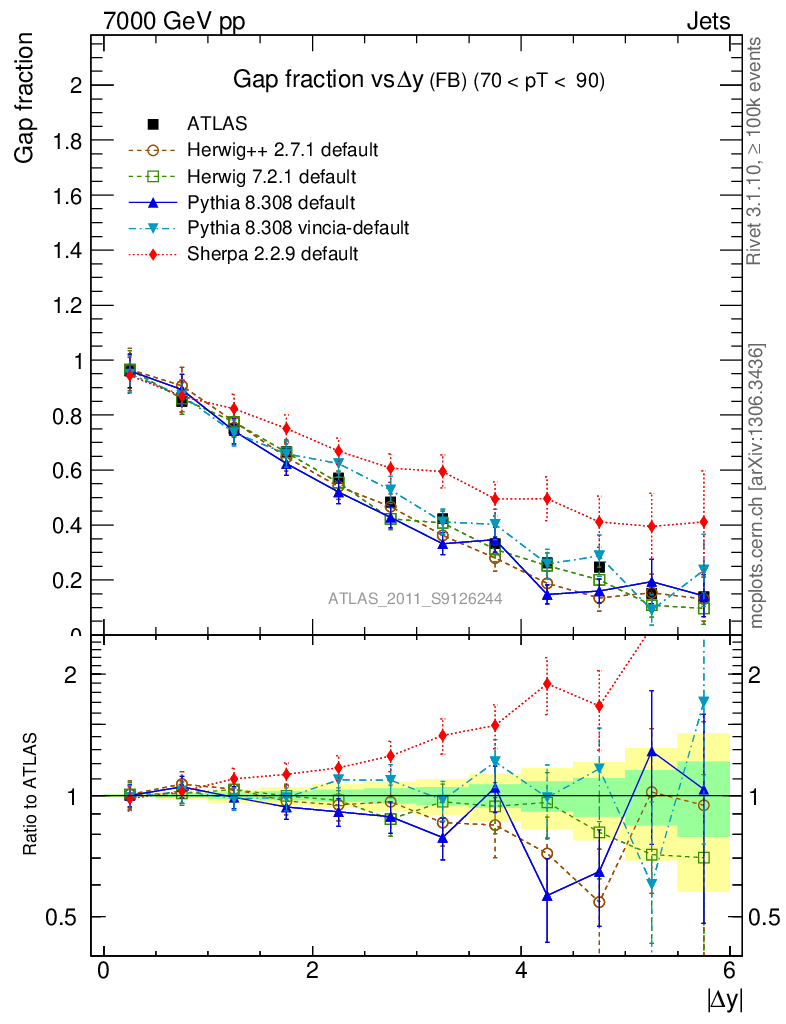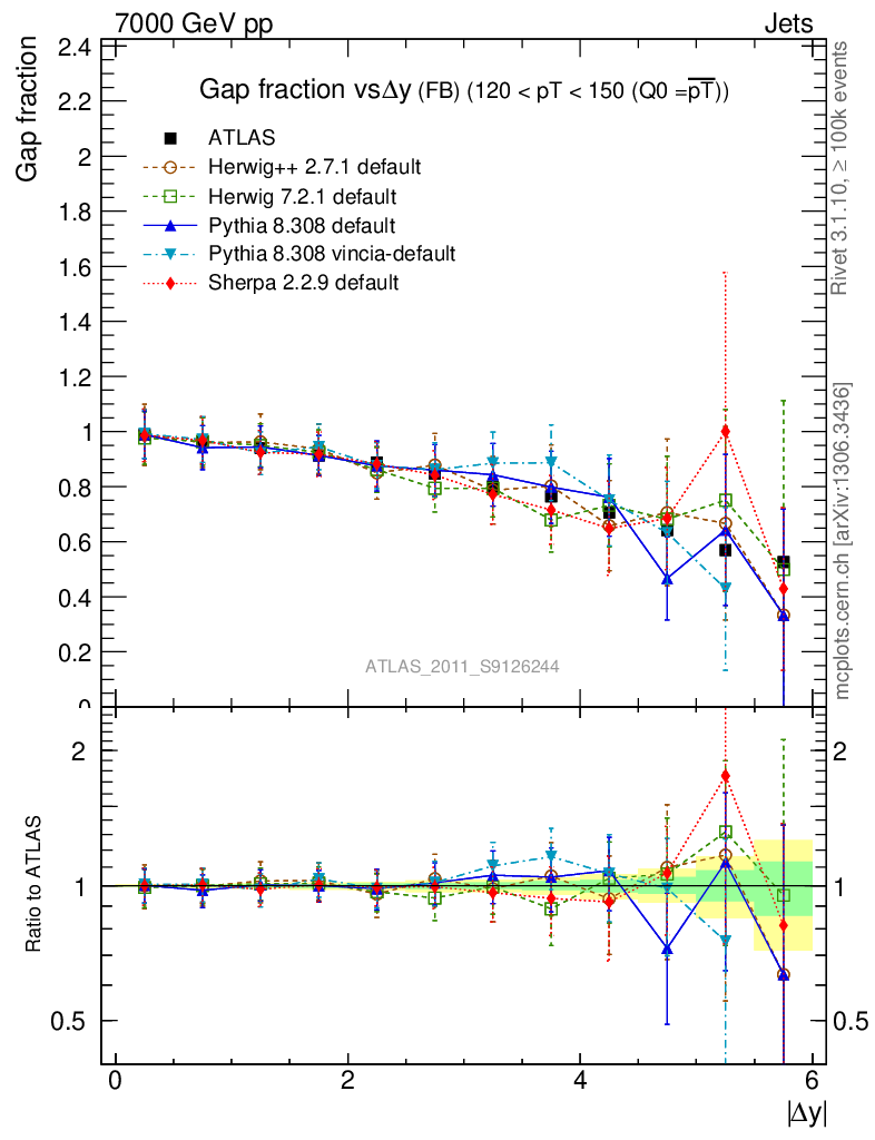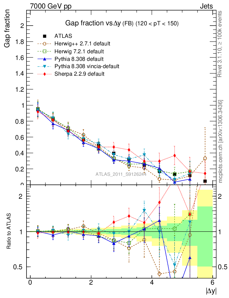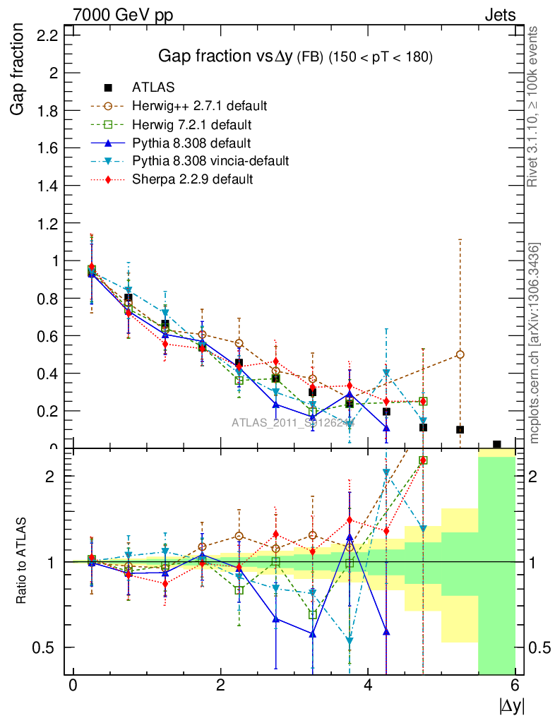 Jets : Jets + Veto : Gap fraction vs Δy (FB)