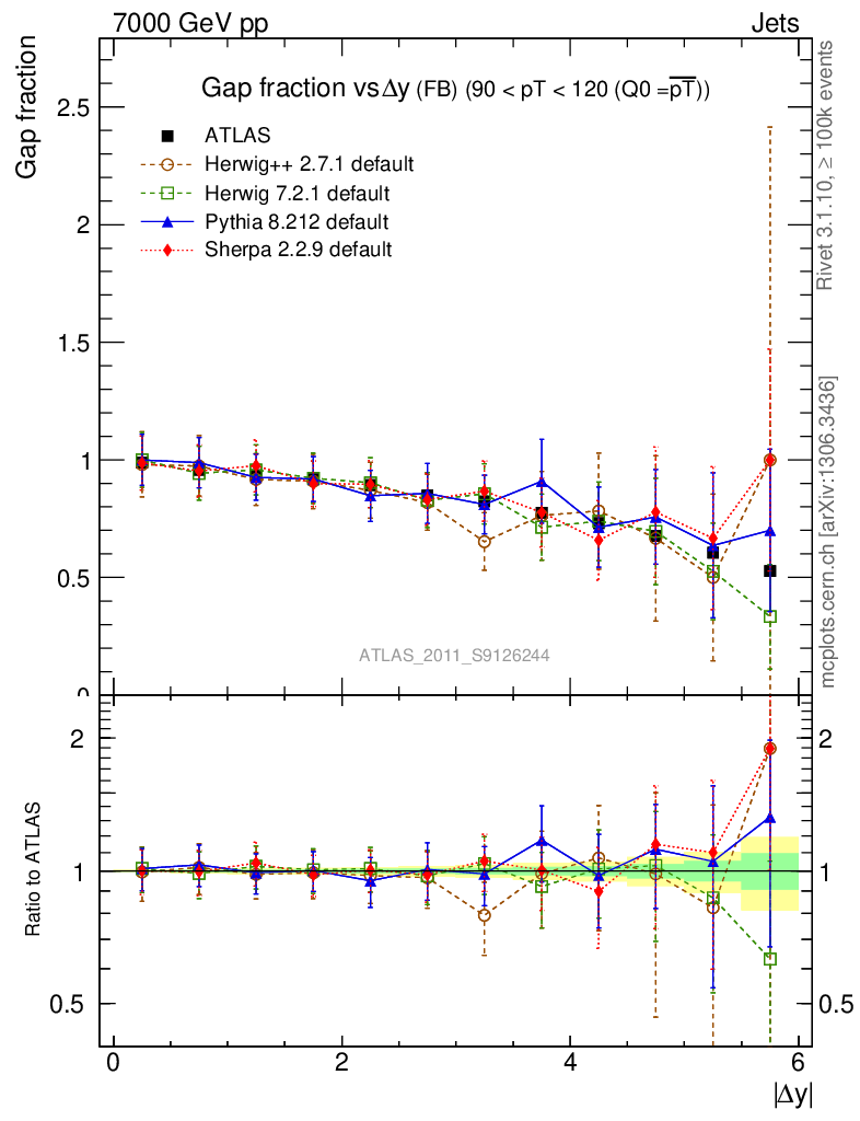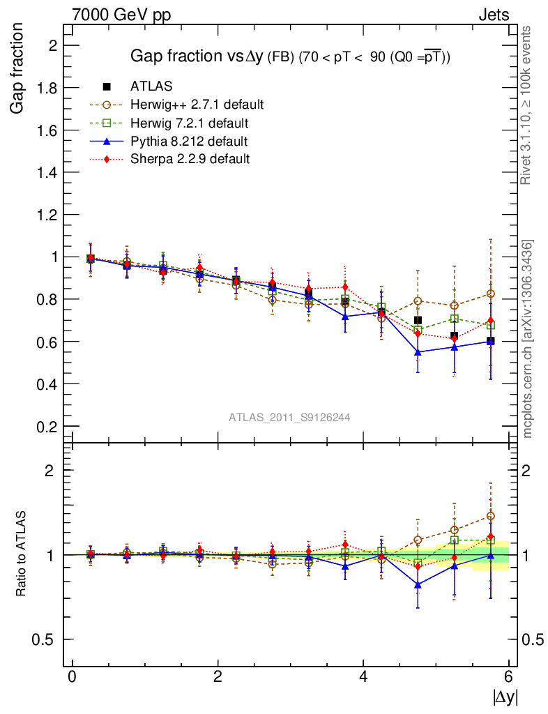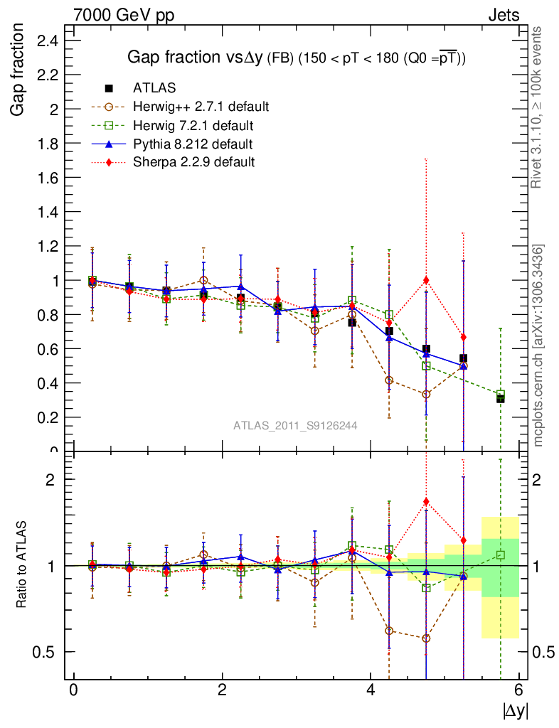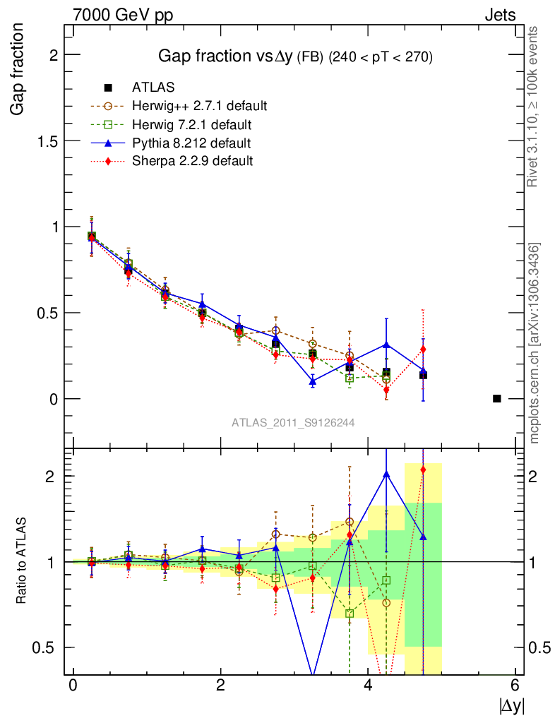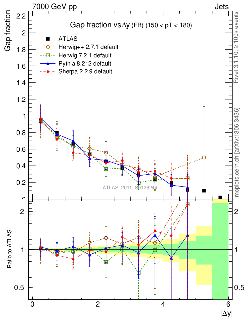 Jets : Jets + Veto : Gap fraction vs Δy (FB)