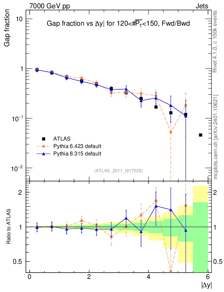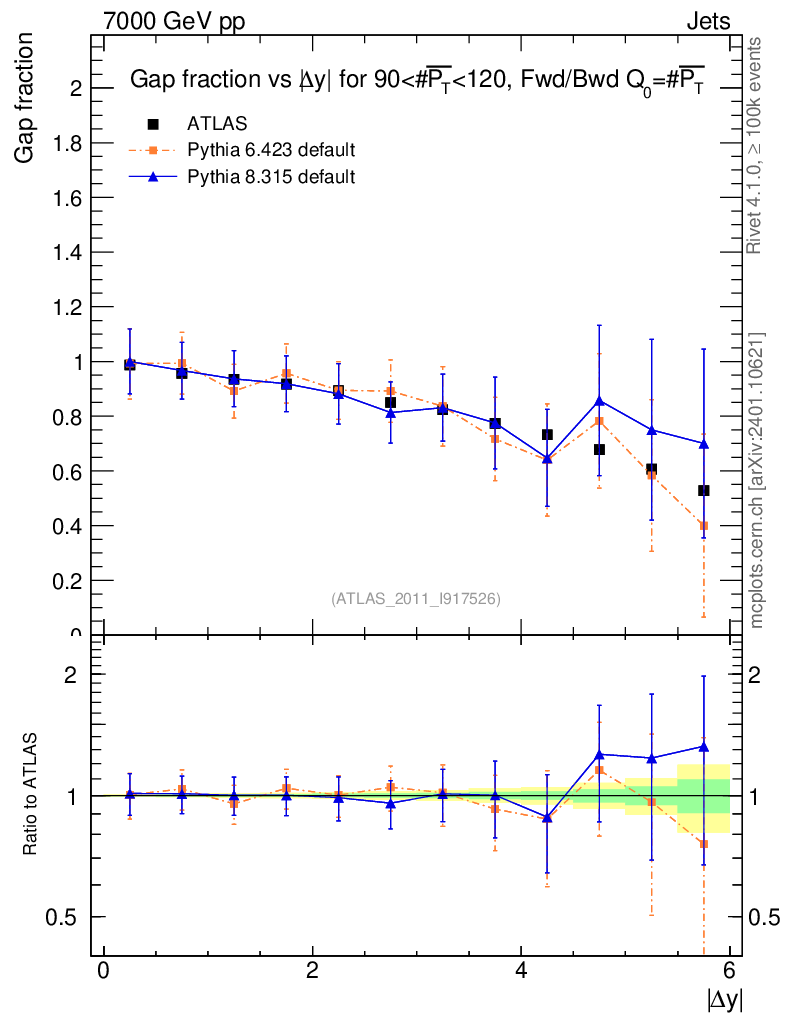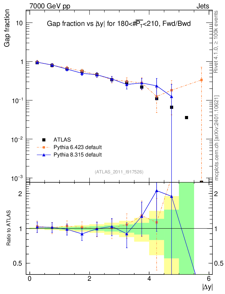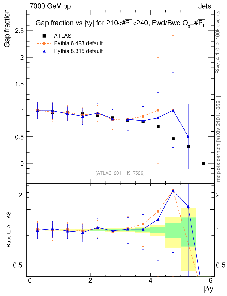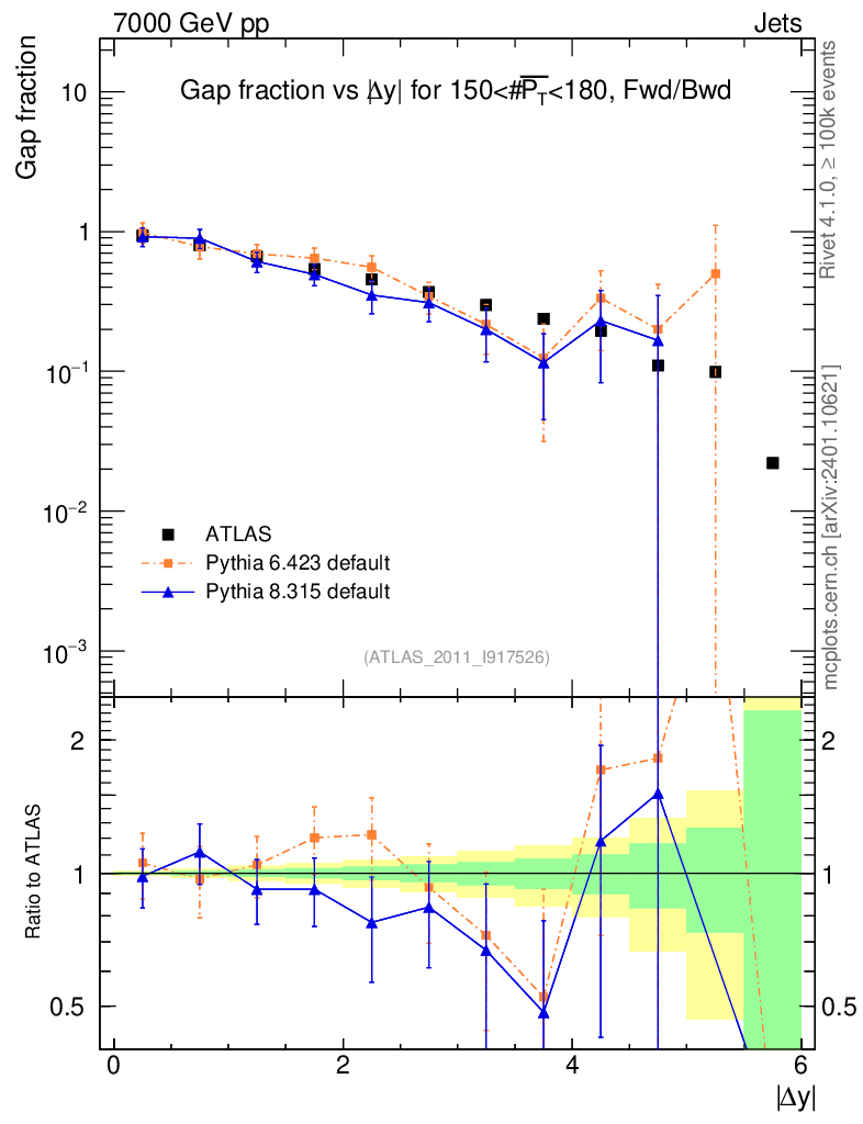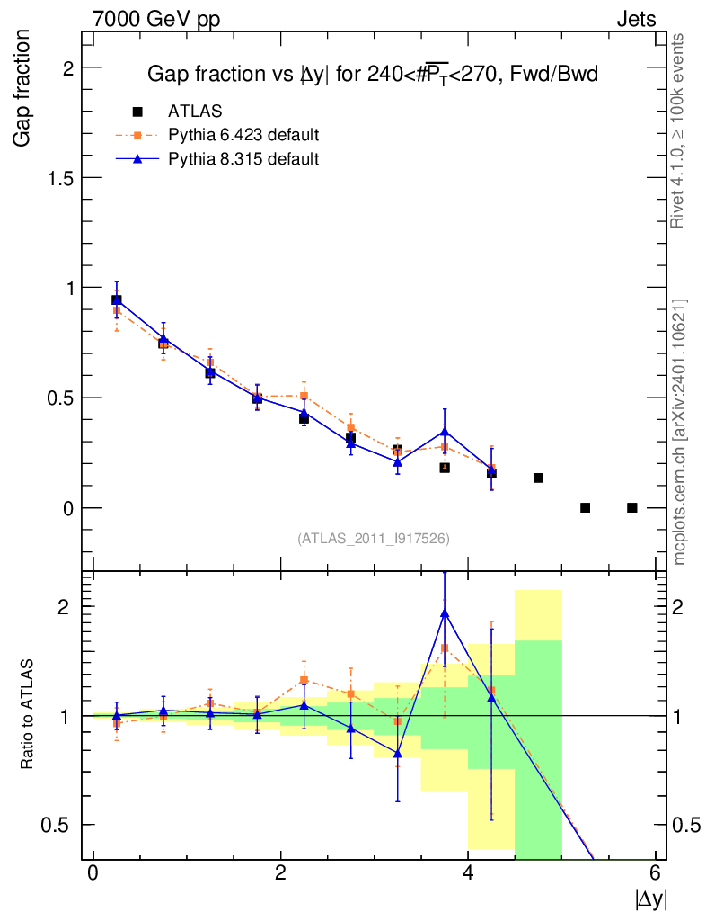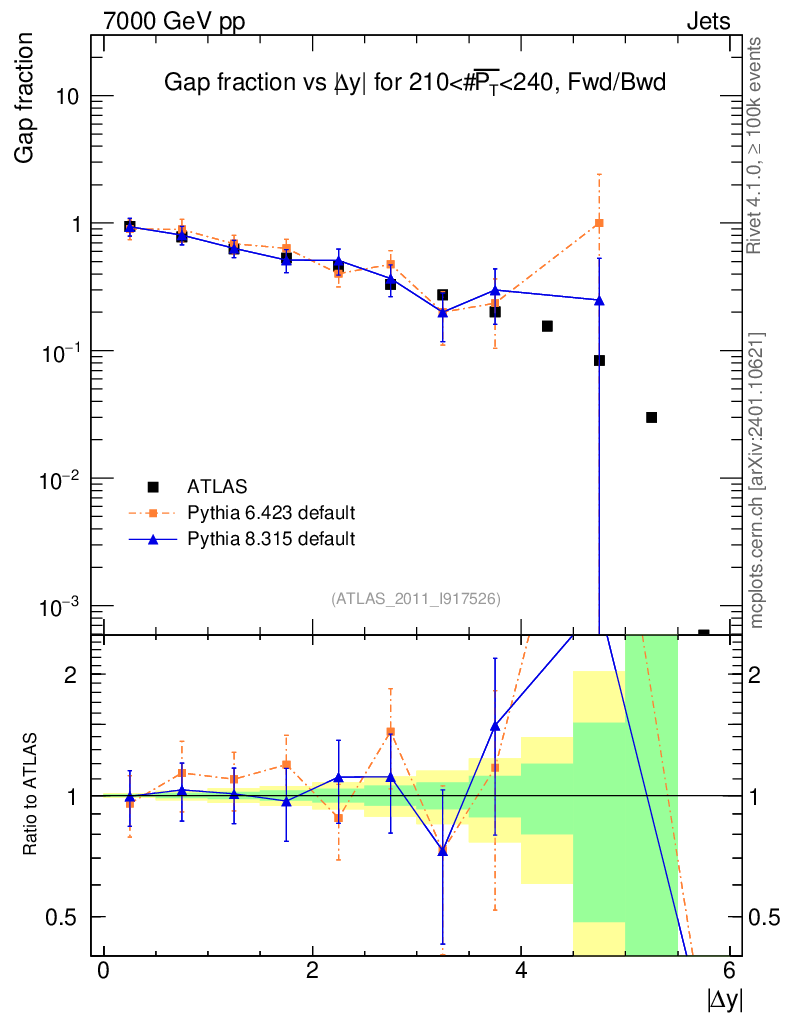 Jets : Jets + Veto : Gap fraction vs Δy (FB)