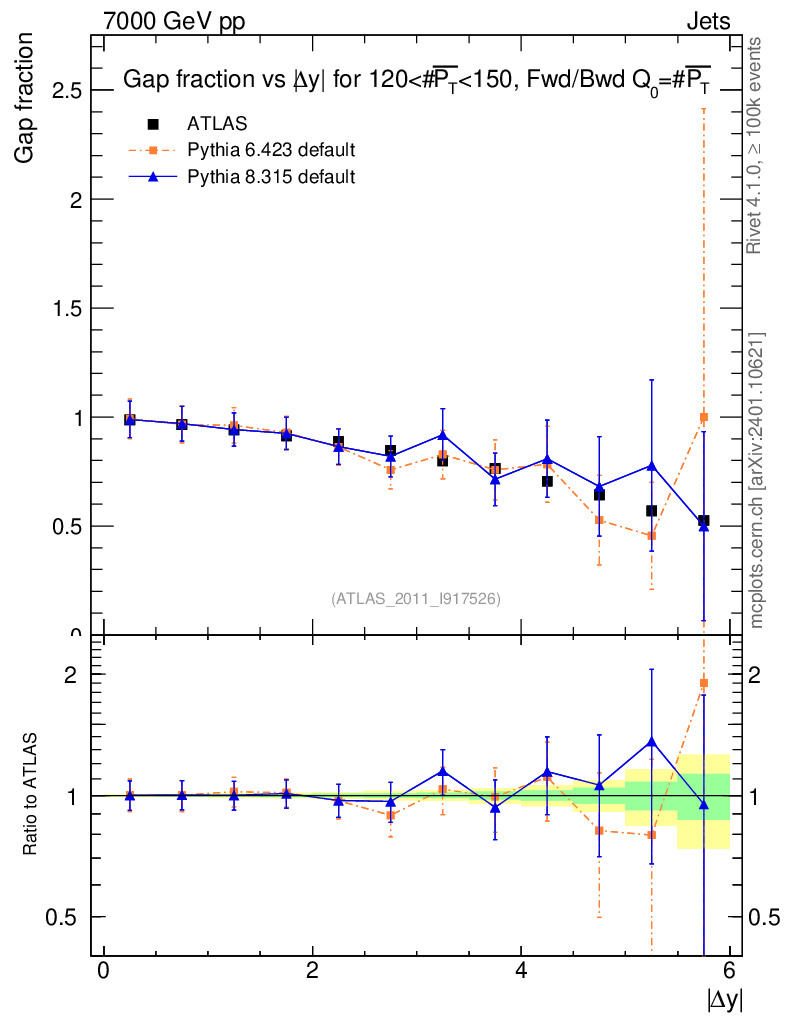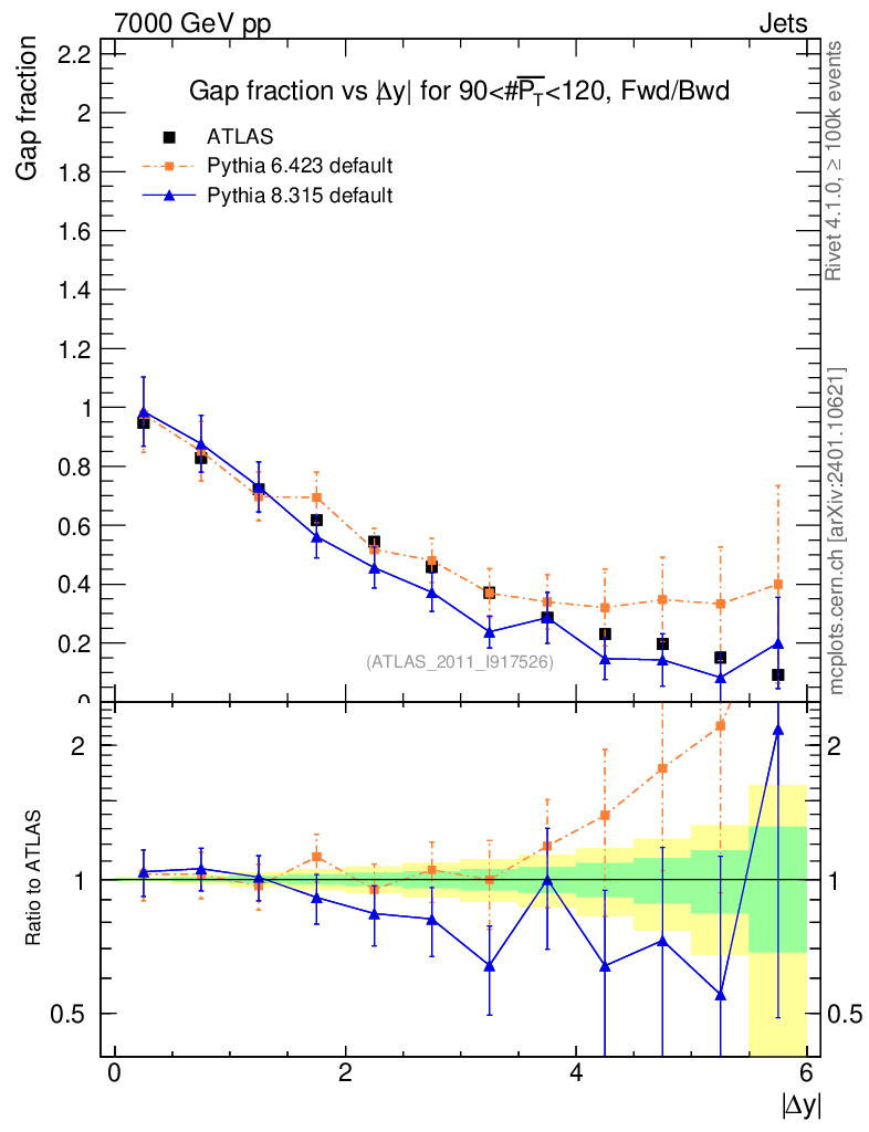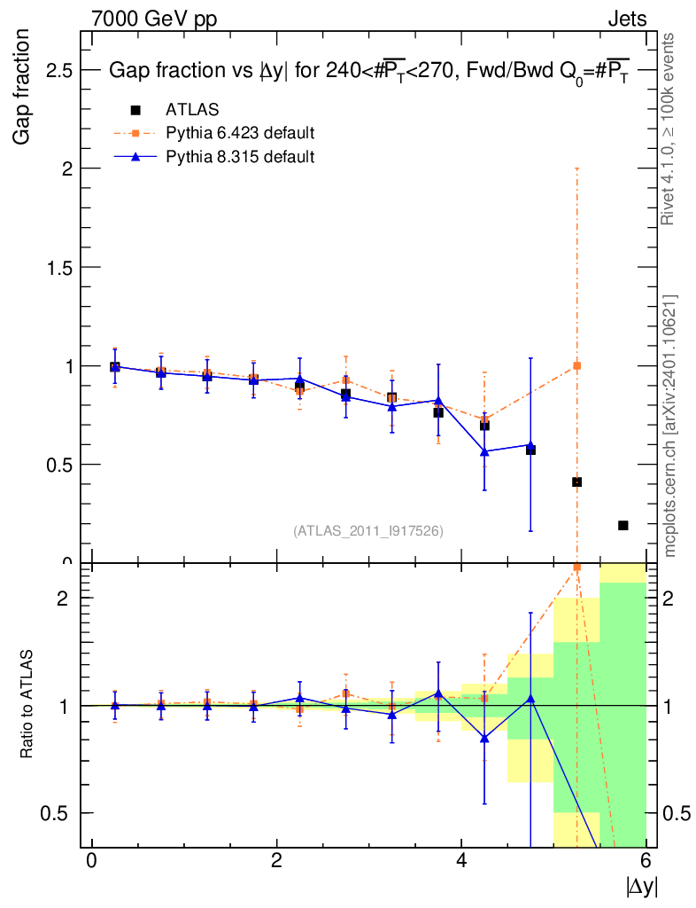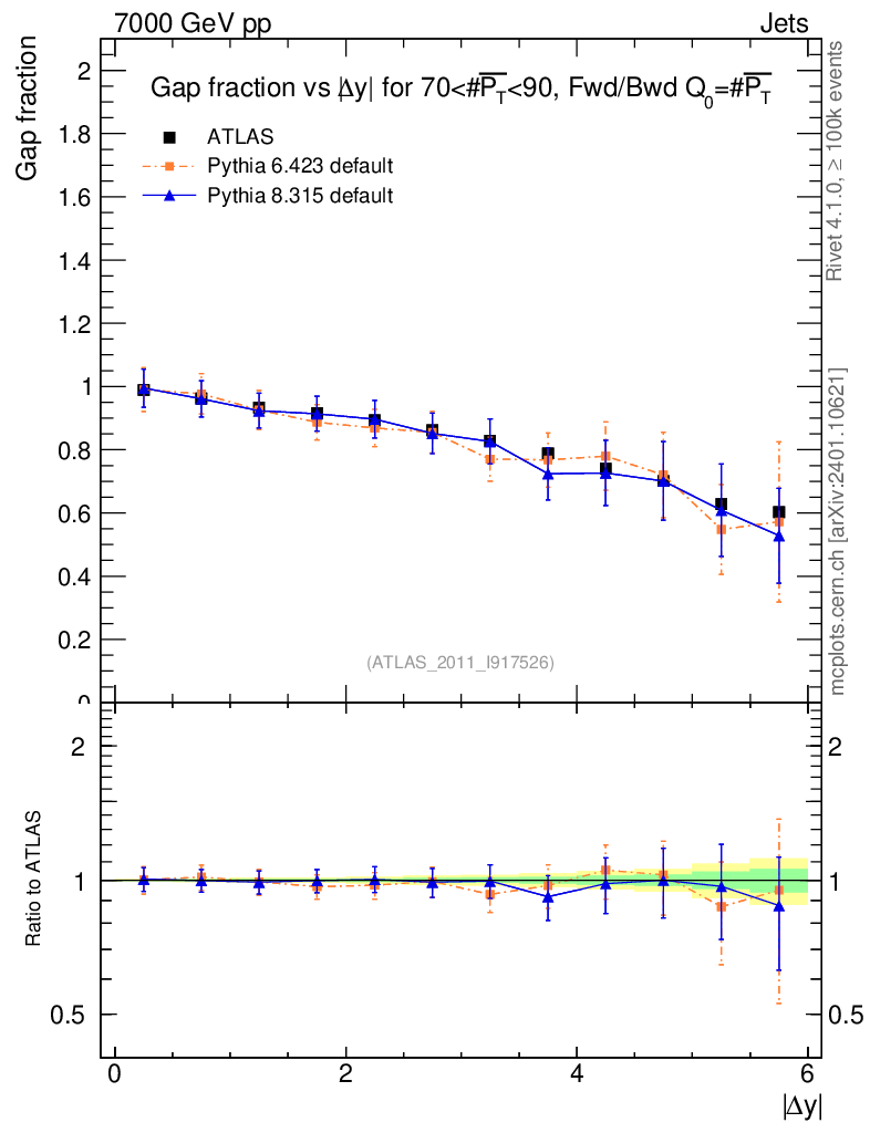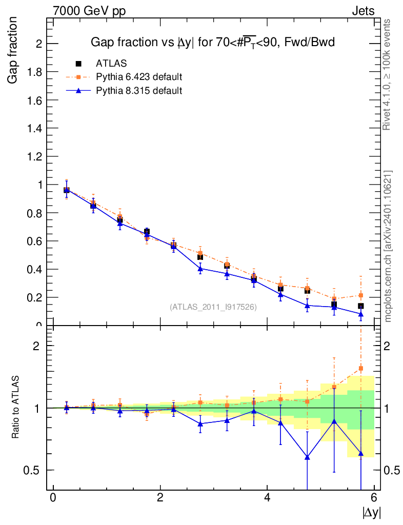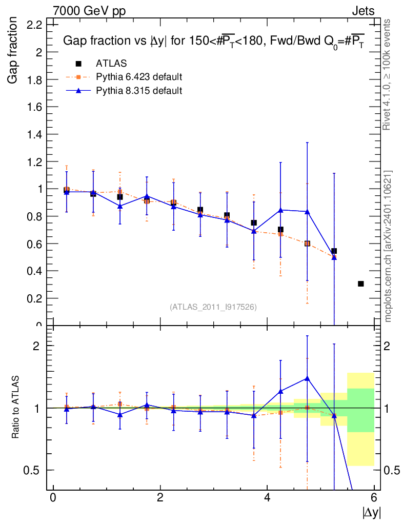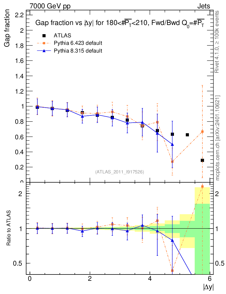 Jets : Jets + Veto : Gap fraction vs Δy (FB)