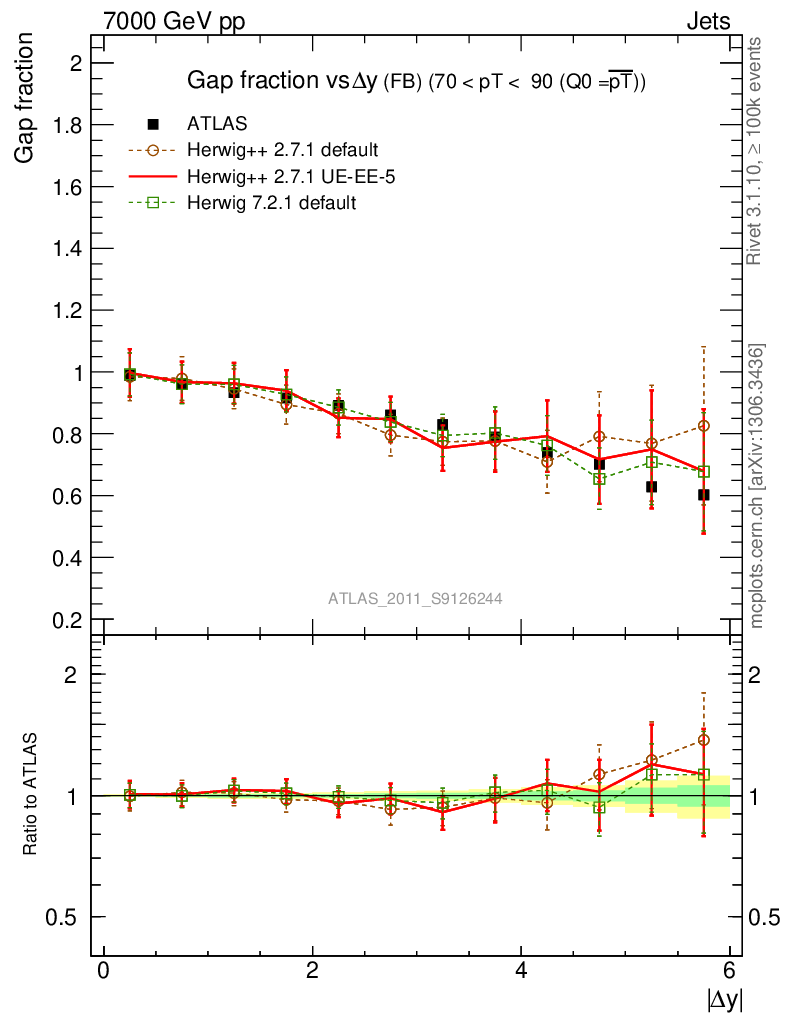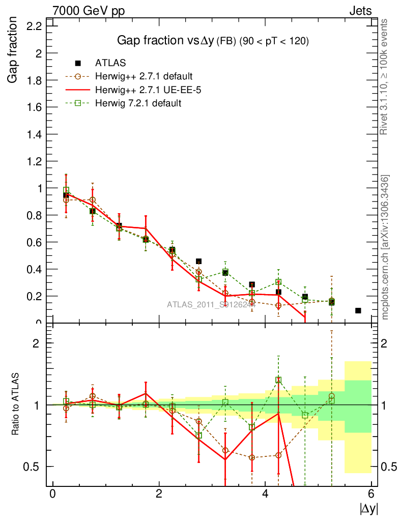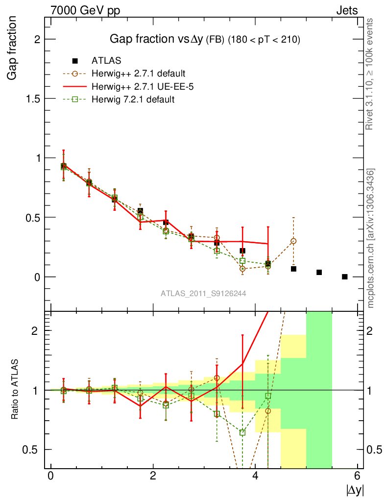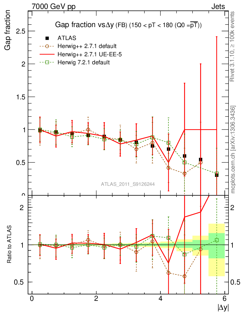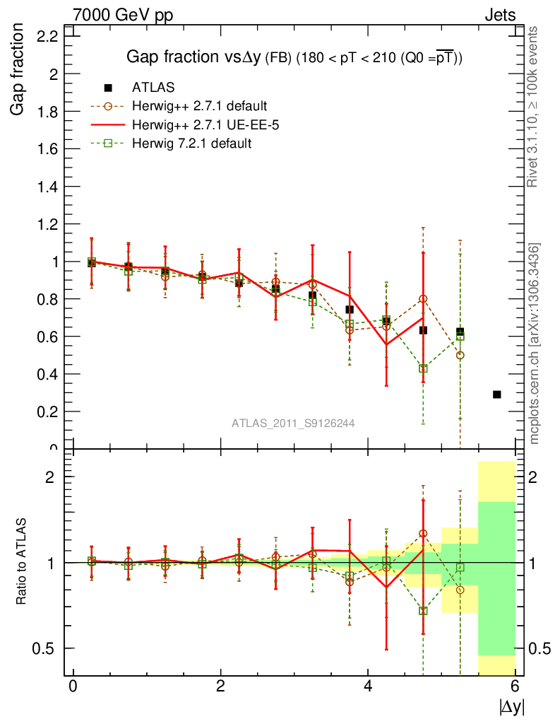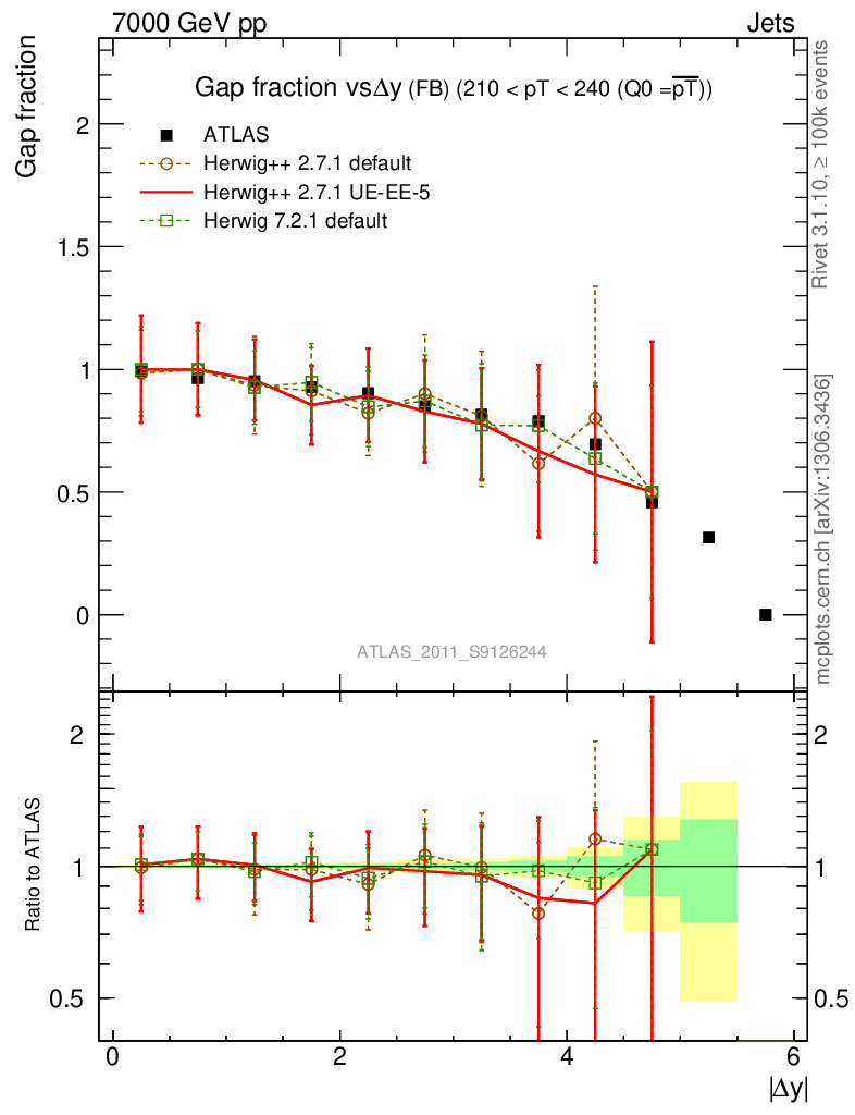 Jets : Jets + Veto : Gap fraction vs Δy (FB)