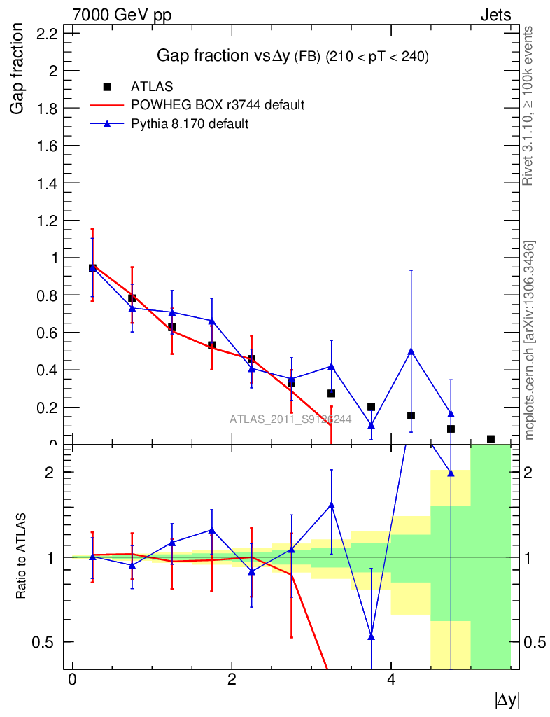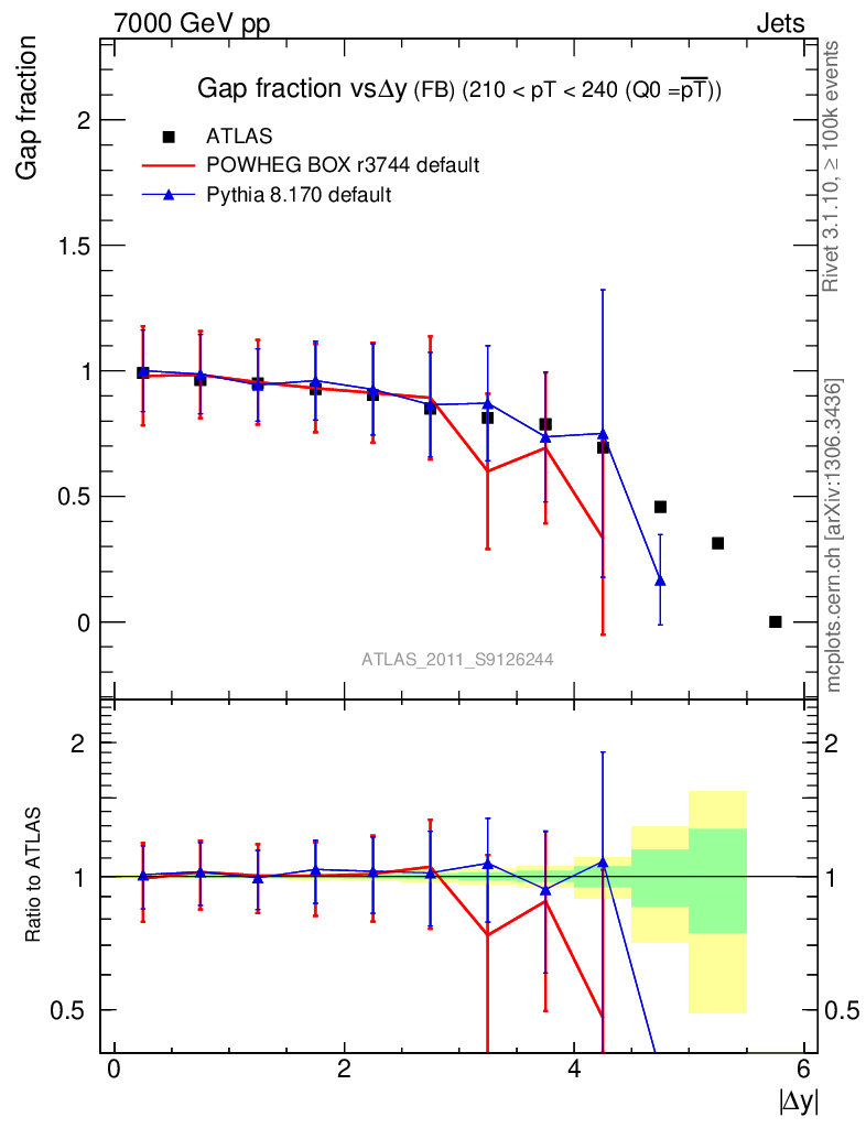 Jets : Jets + Veto : Gap fraction vs Δy (FB)