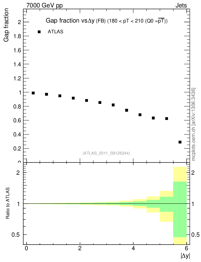 Jets : Jets + Veto : Gap fraction vs Δy (FB)