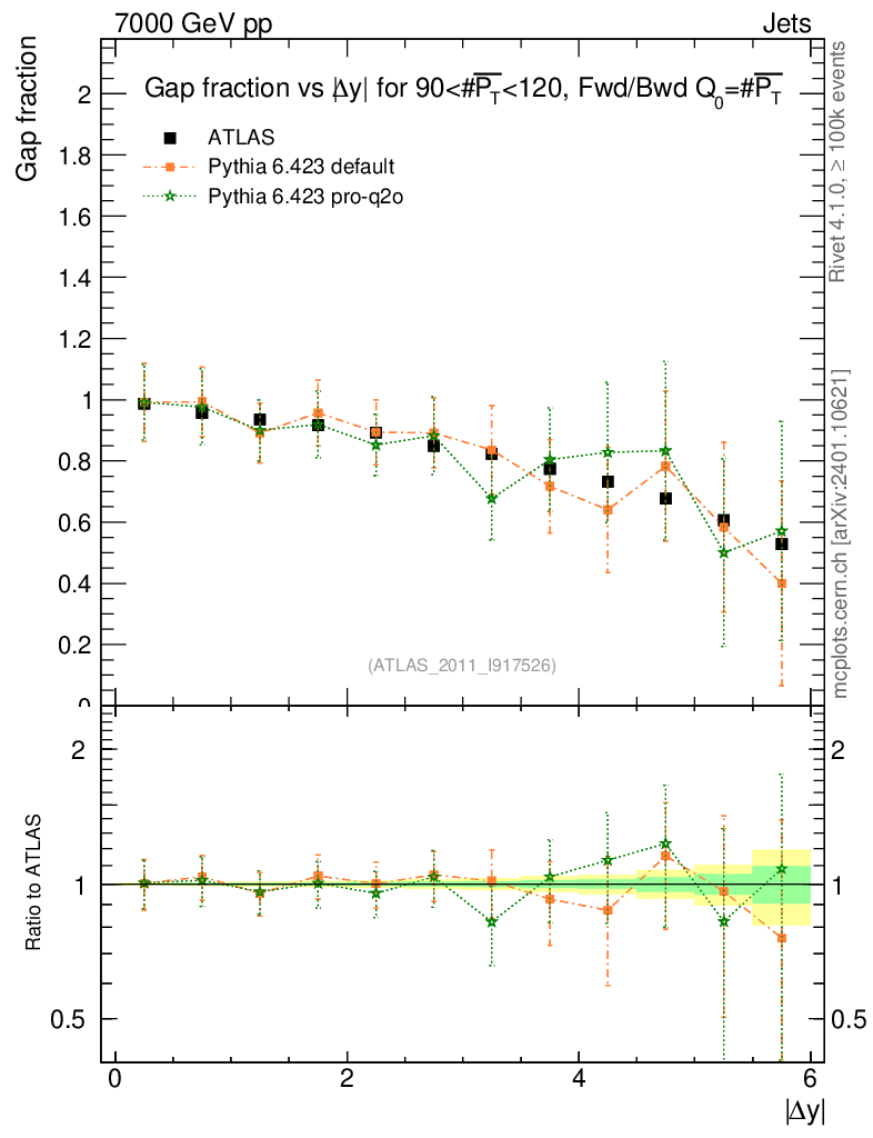 Gap fraction vs pT (LJ)
