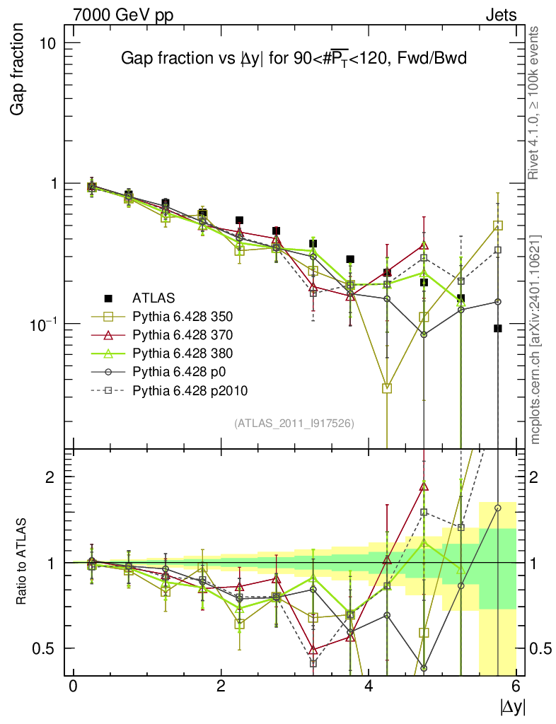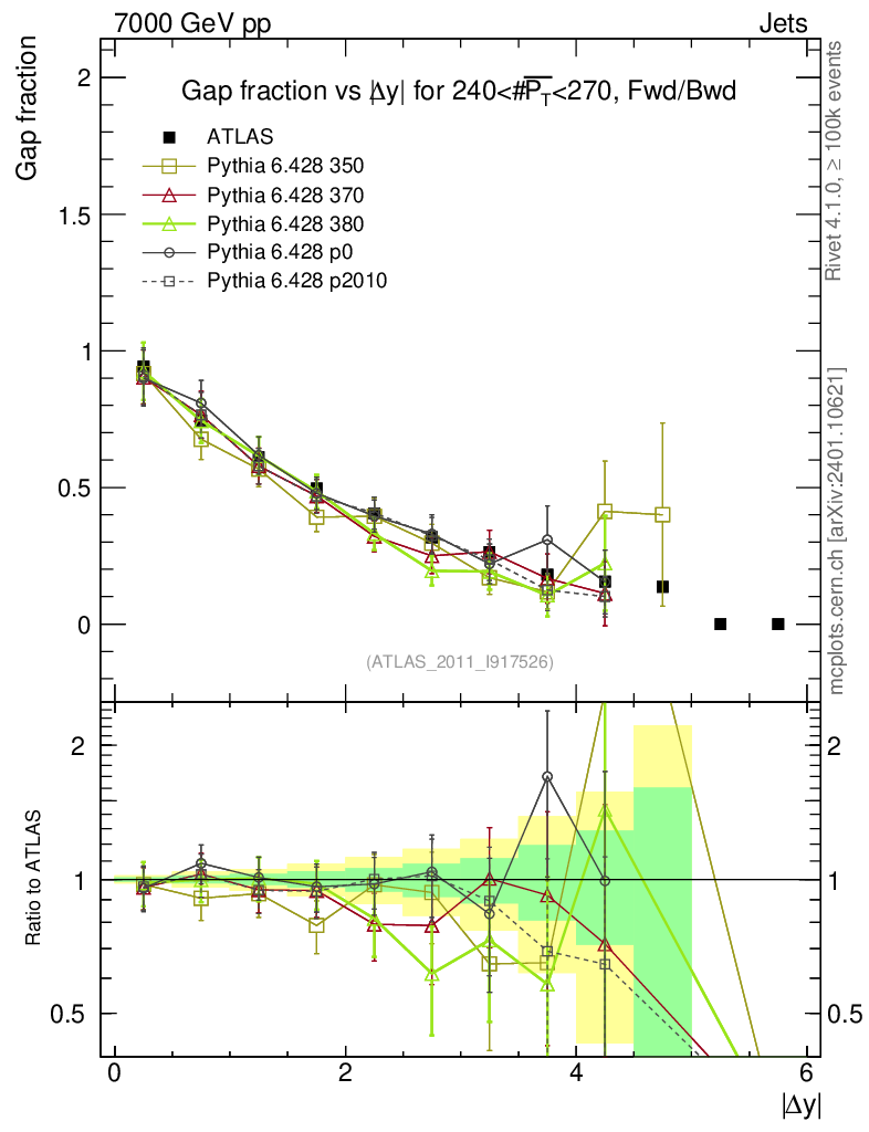 Jets : Jets + Veto : Gap fraction vs Δy (FB)