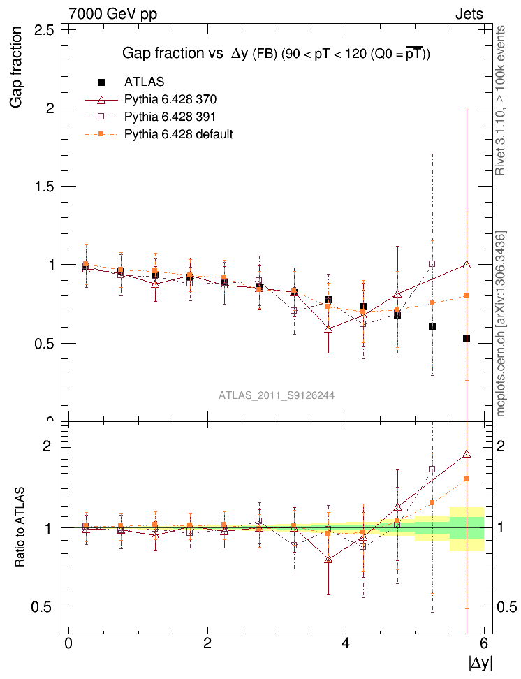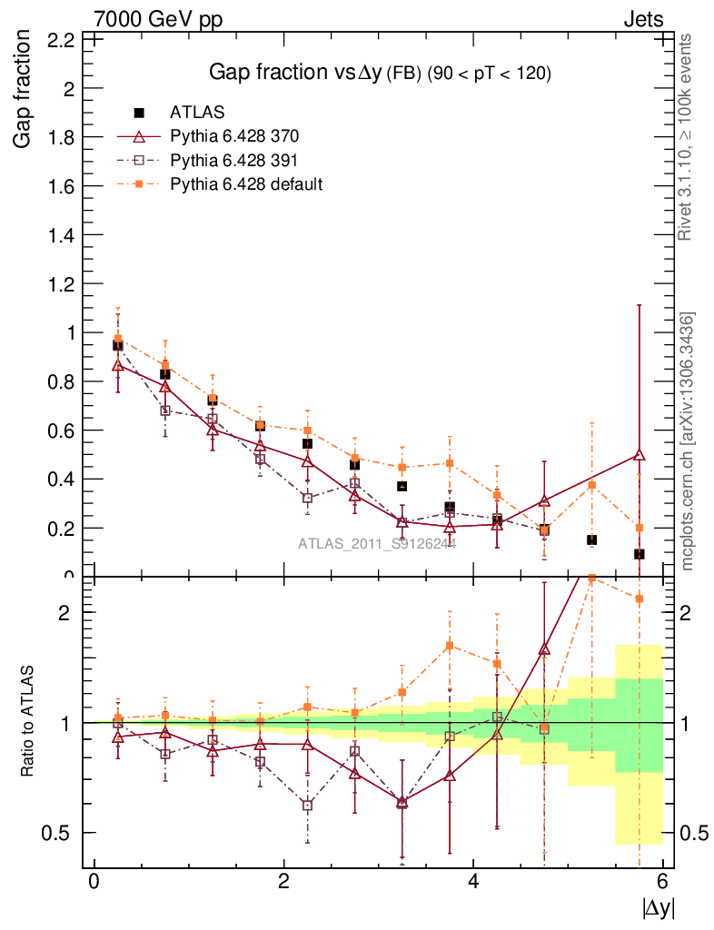 Jets : Jets + Veto : Gap fraction vs Δy (FB)
