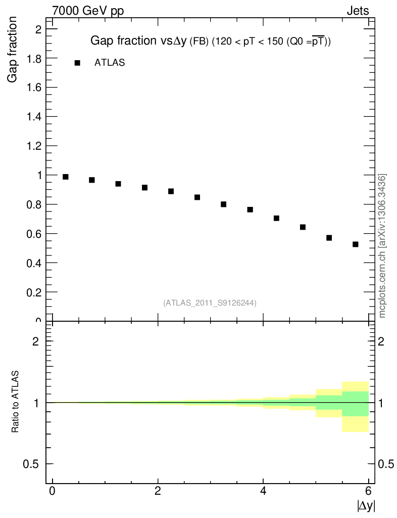 Jets : Jets + Veto : Gap fraction vs Δy (FB)