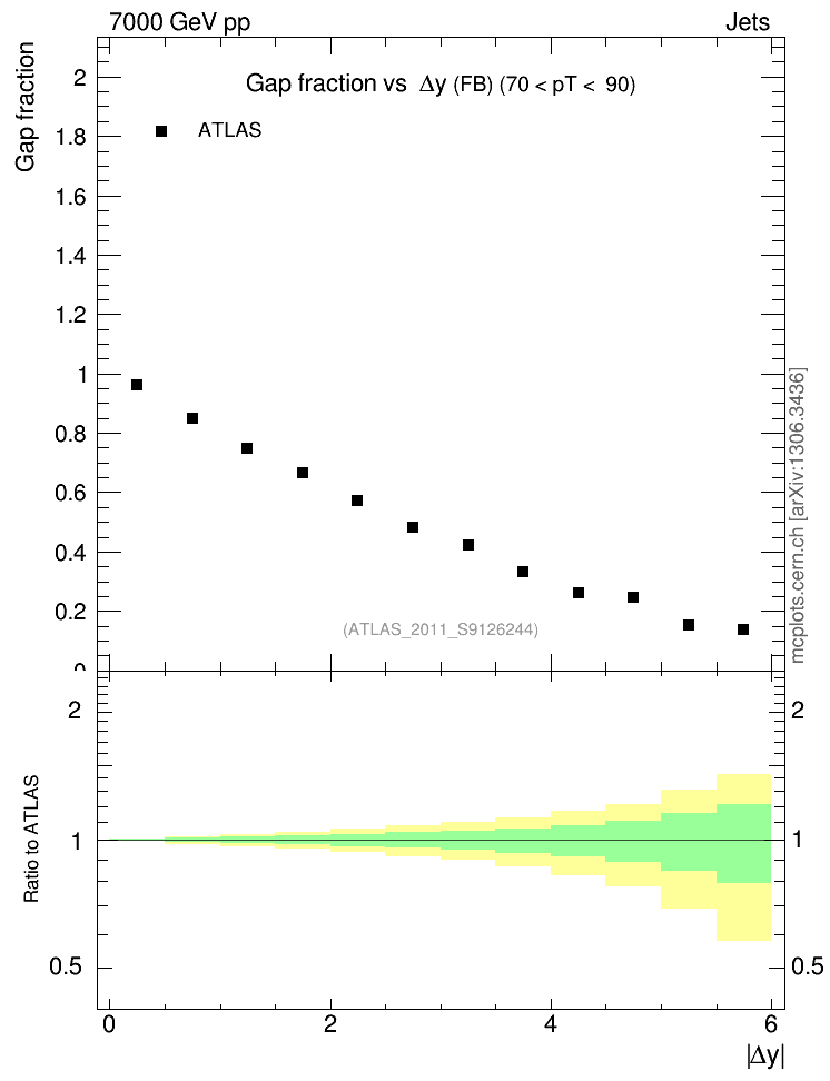 Jets : Jets + Veto : Gap fraction vs Δy (FB)