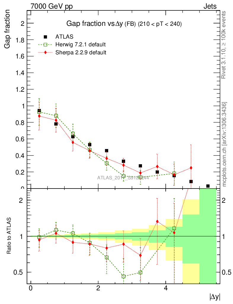 Jets : Jets + Veto : Gap fraction vs Δy (FB)