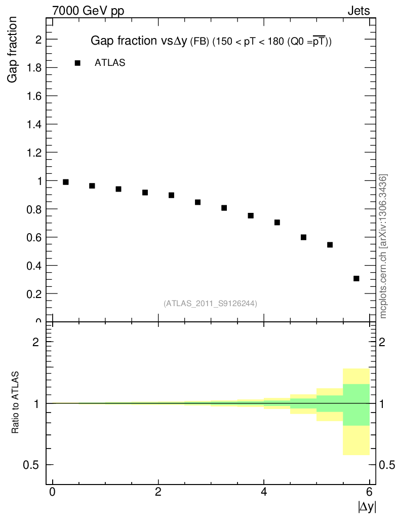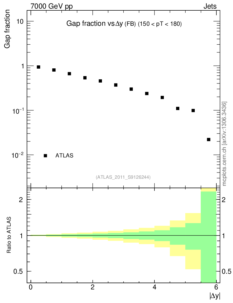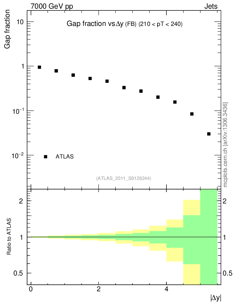 Jets : Jets + Veto : Gap fraction vs Δy (FB)