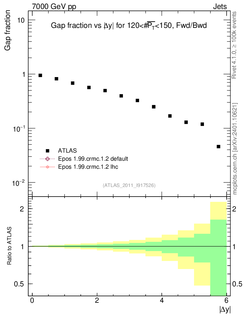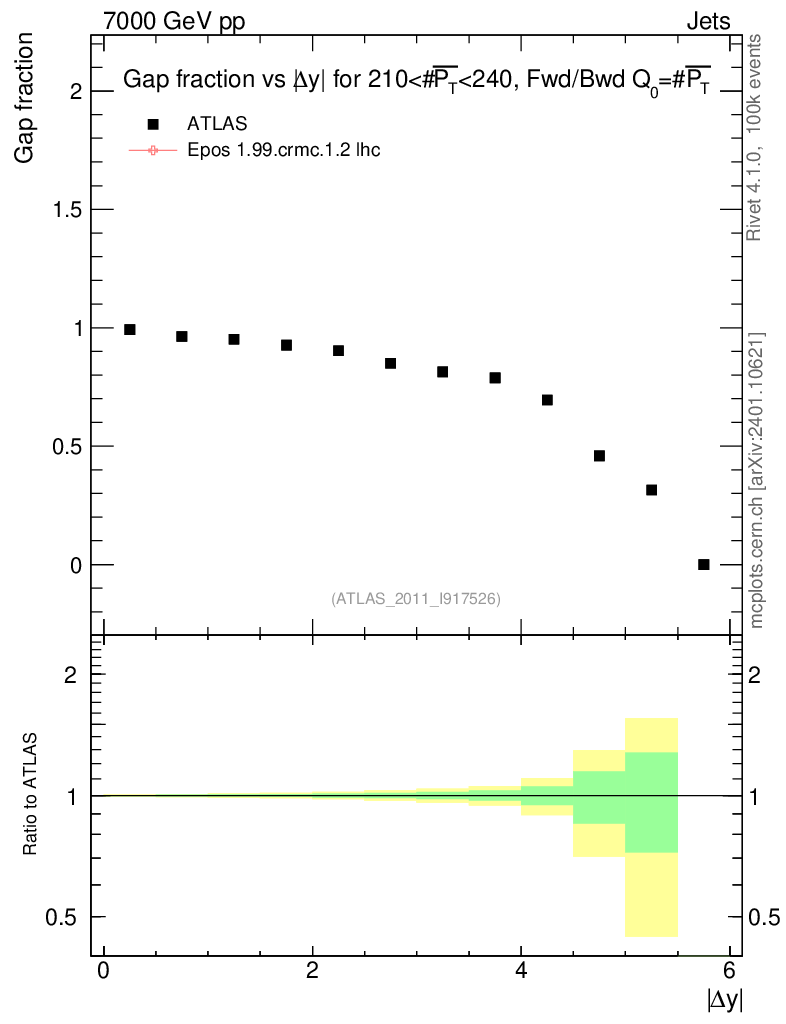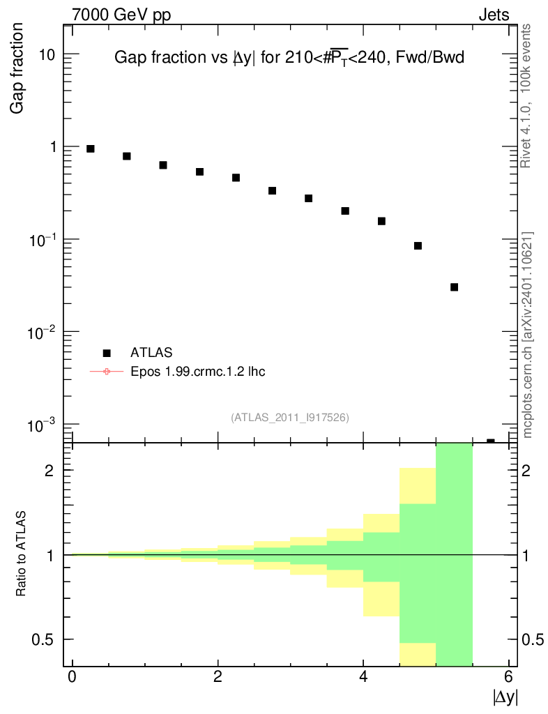 Jets : Jets + Veto : Gap fraction vs Δy (FB)