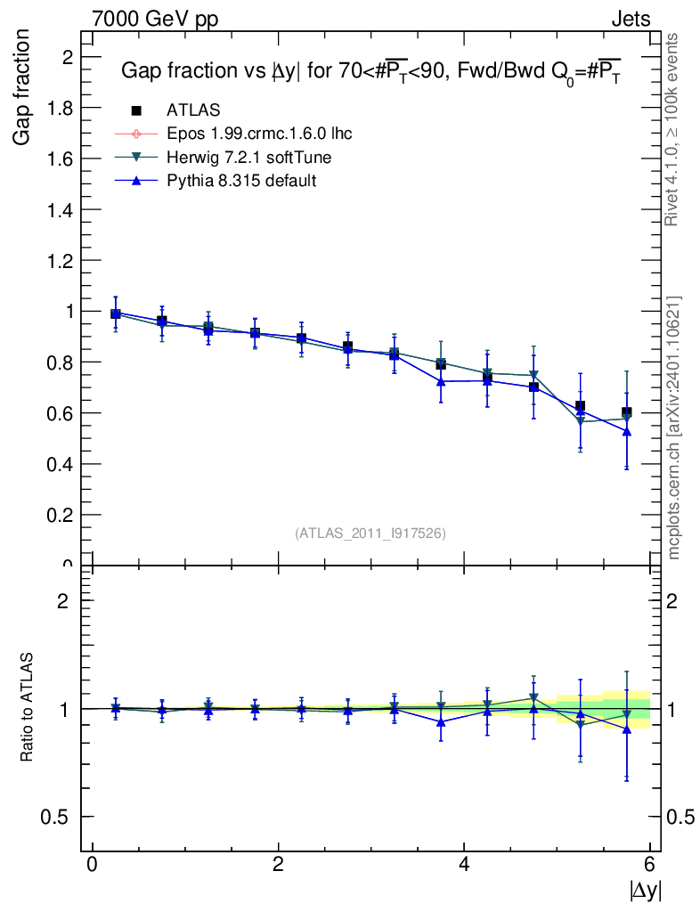 Gap fraction vs Δy (FB)