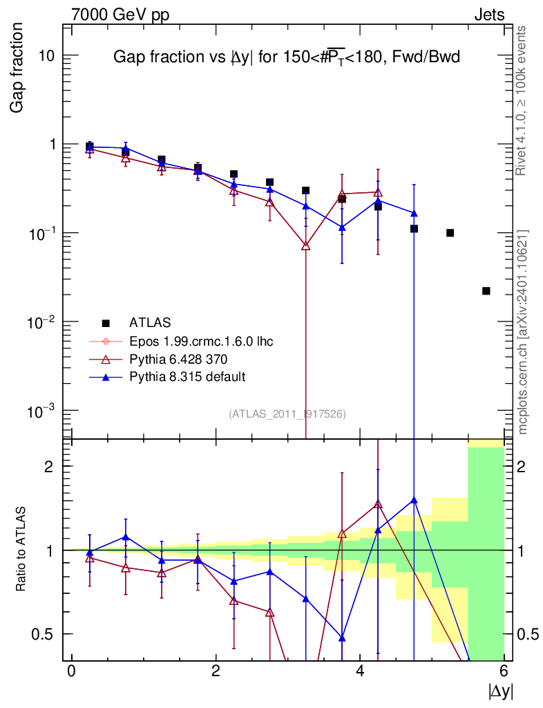 Jets : Jets + Veto : Gap fraction vs Δy (FB)