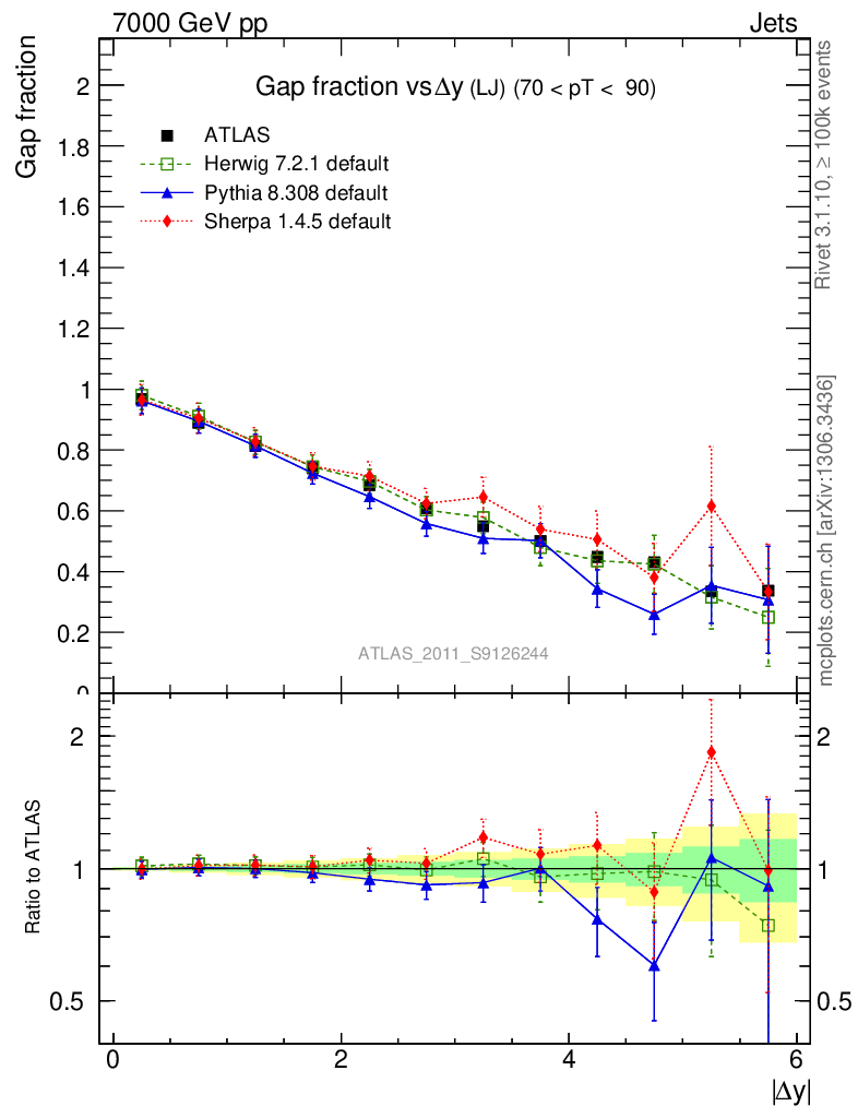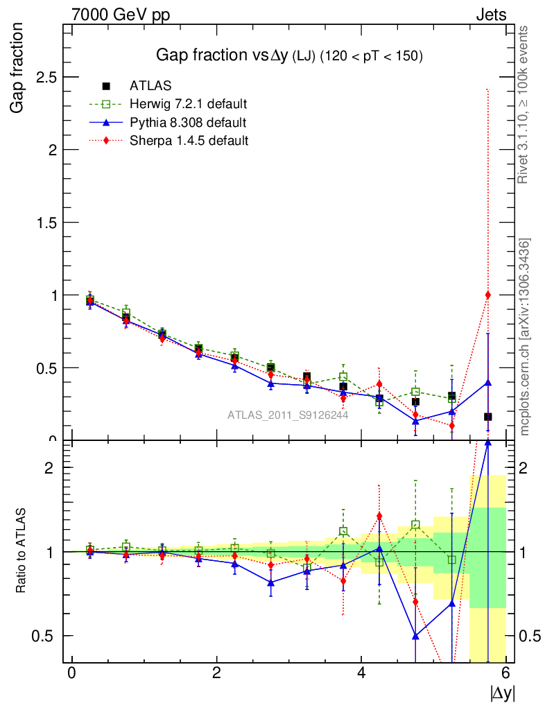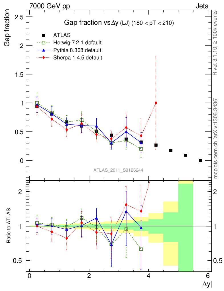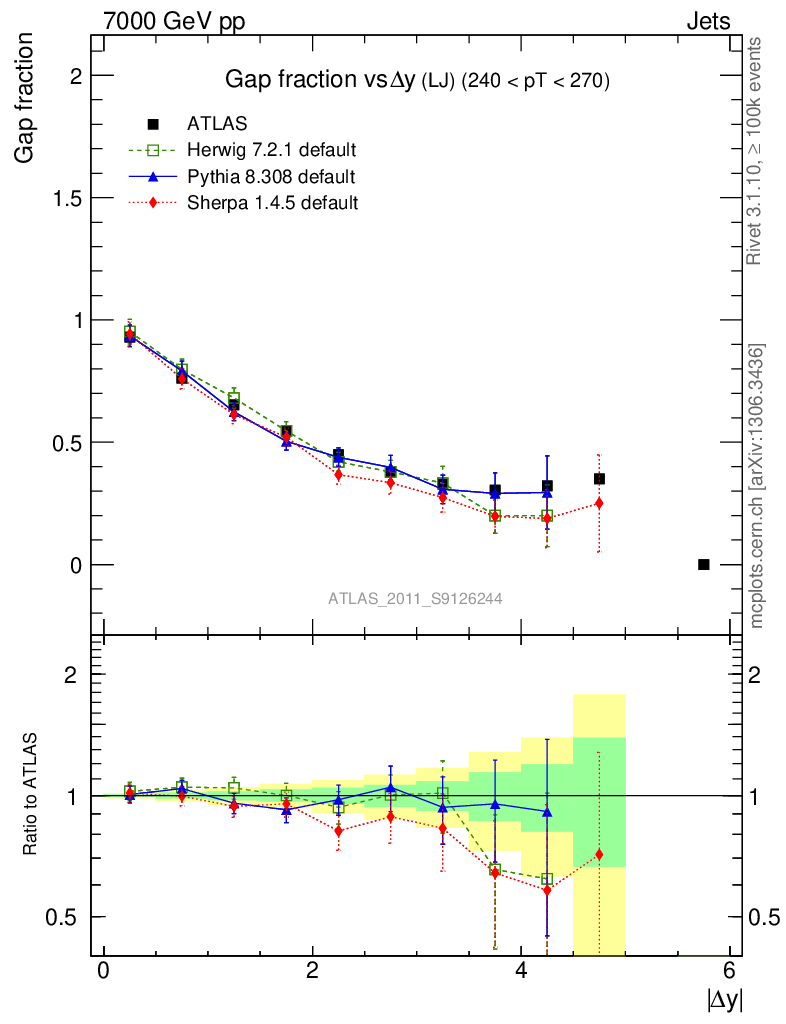 Jets : Jets + Veto : Gap fraction vs Δy (LJ)