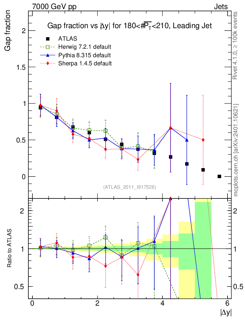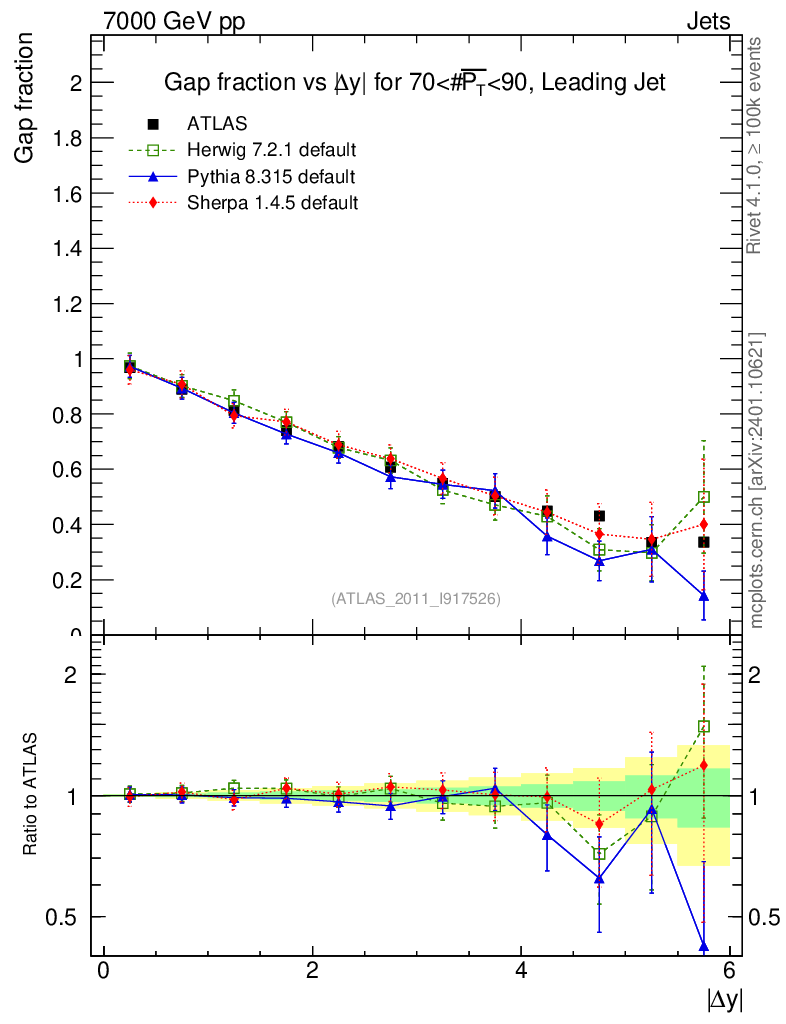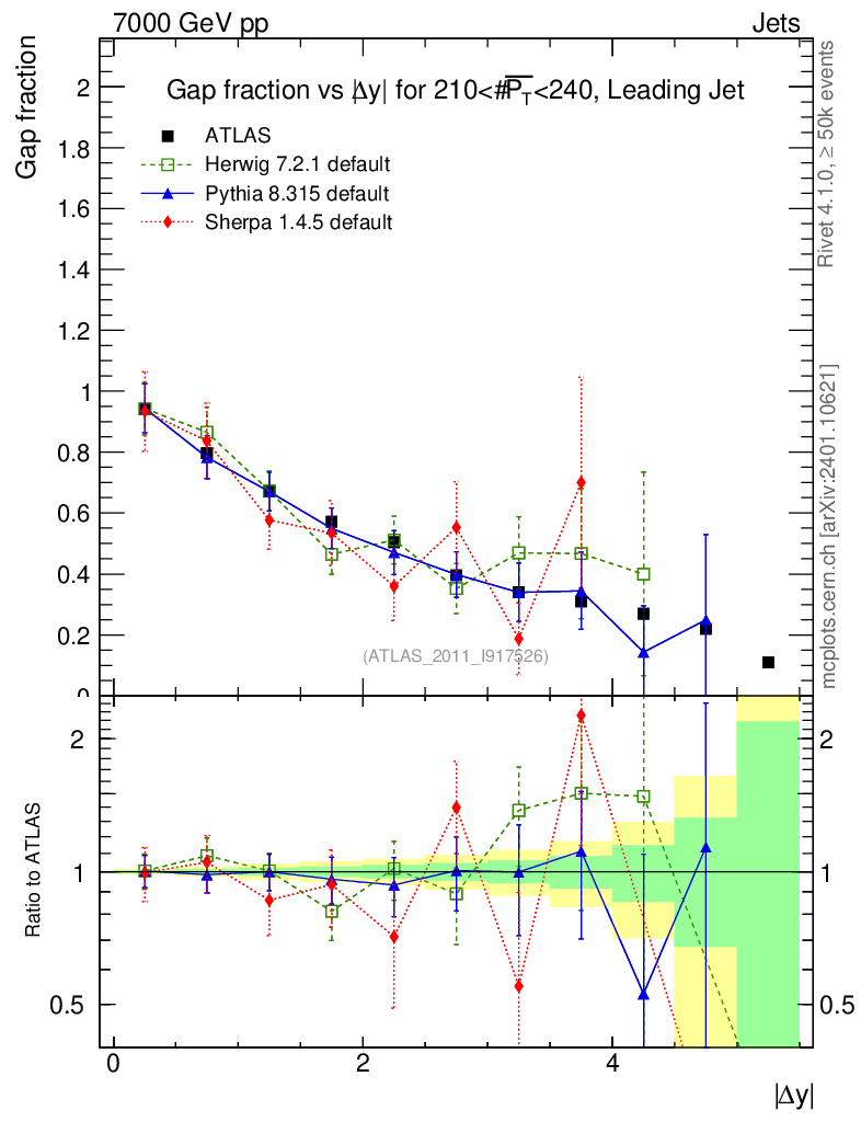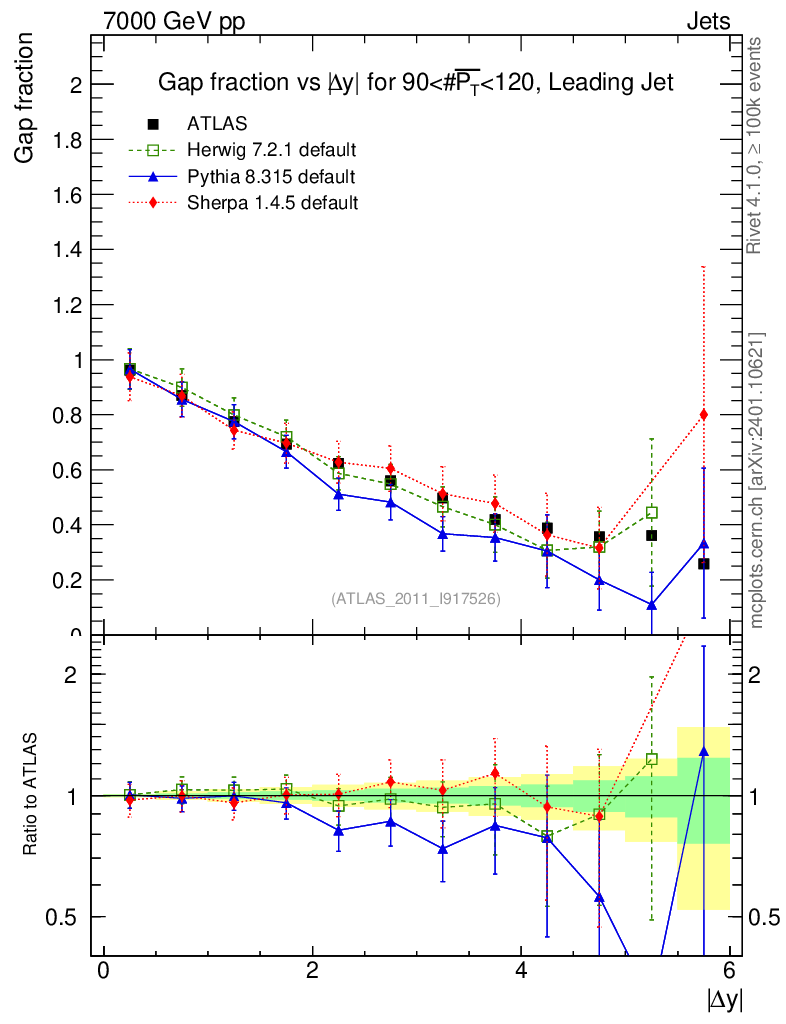 Jets : Jets + Veto : Gap fraction vs Δy (LJ)