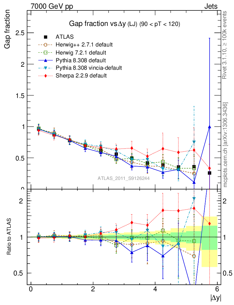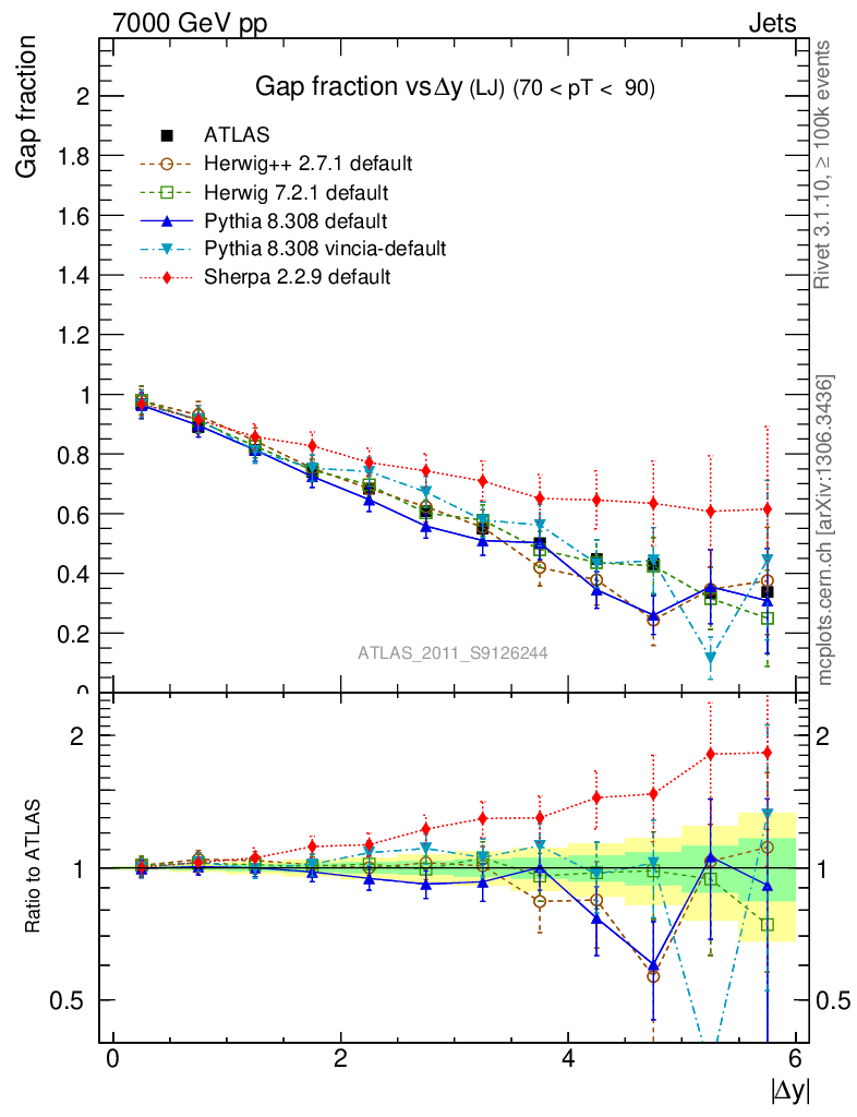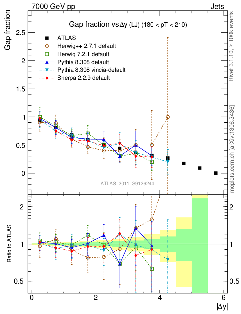 Jets : Jets + Veto : Gap fraction vs Δy (LJ)
