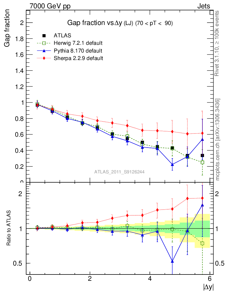 Jets : Jets + Veto : Gap fraction vs Δy (LJ)
