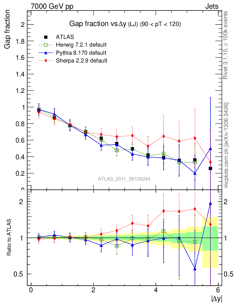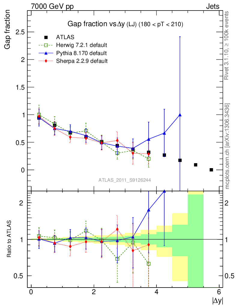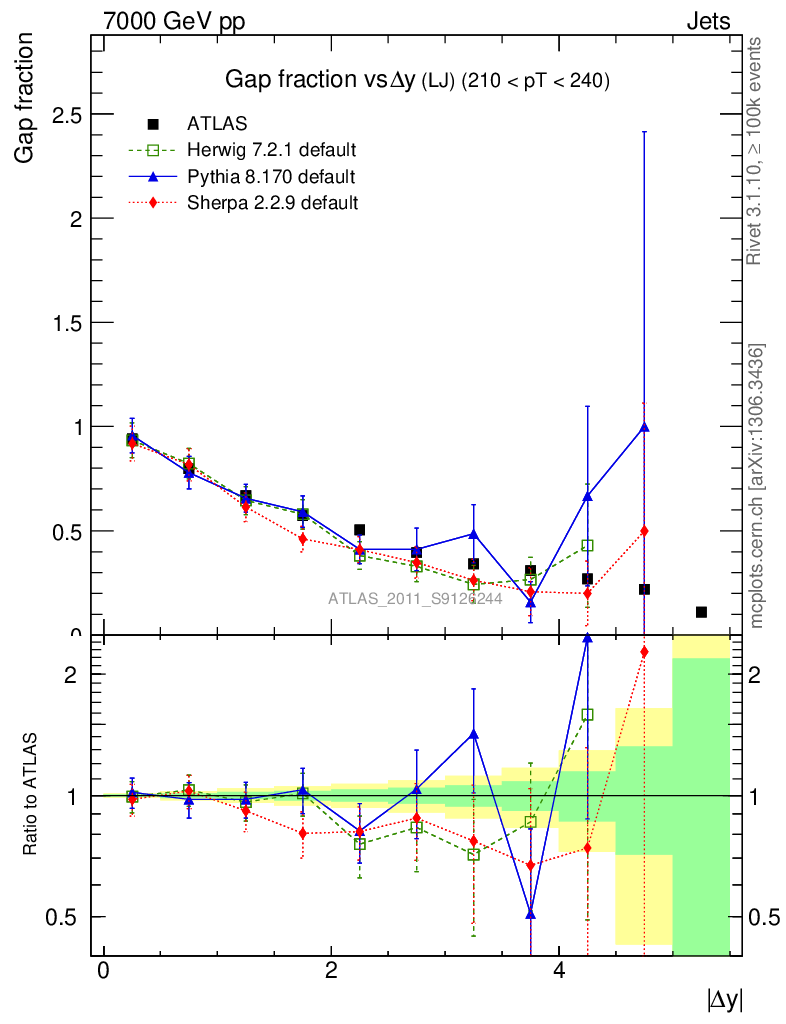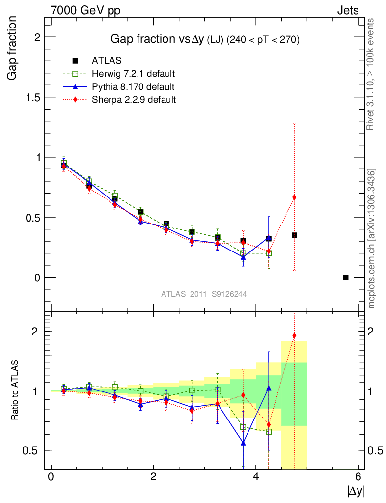 Jets : Jets + Veto : Gap fraction vs Δy (LJ)