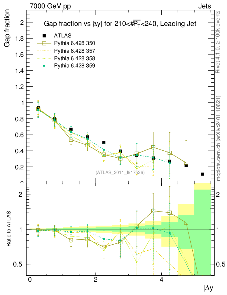 Jets : Jets + Veto : Gap fraction vs Δy (LJ)