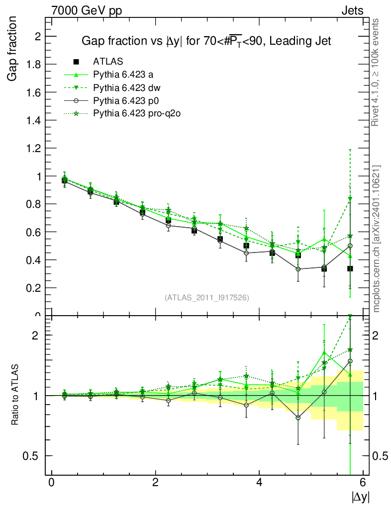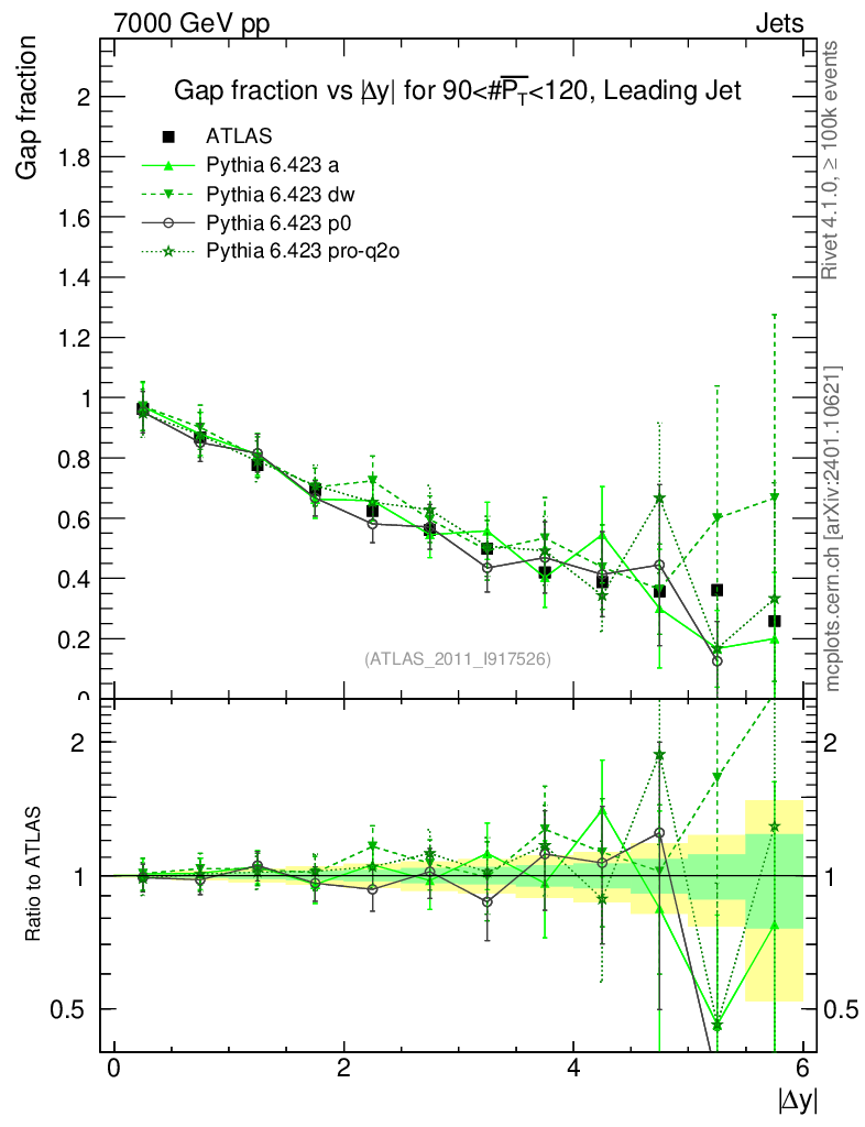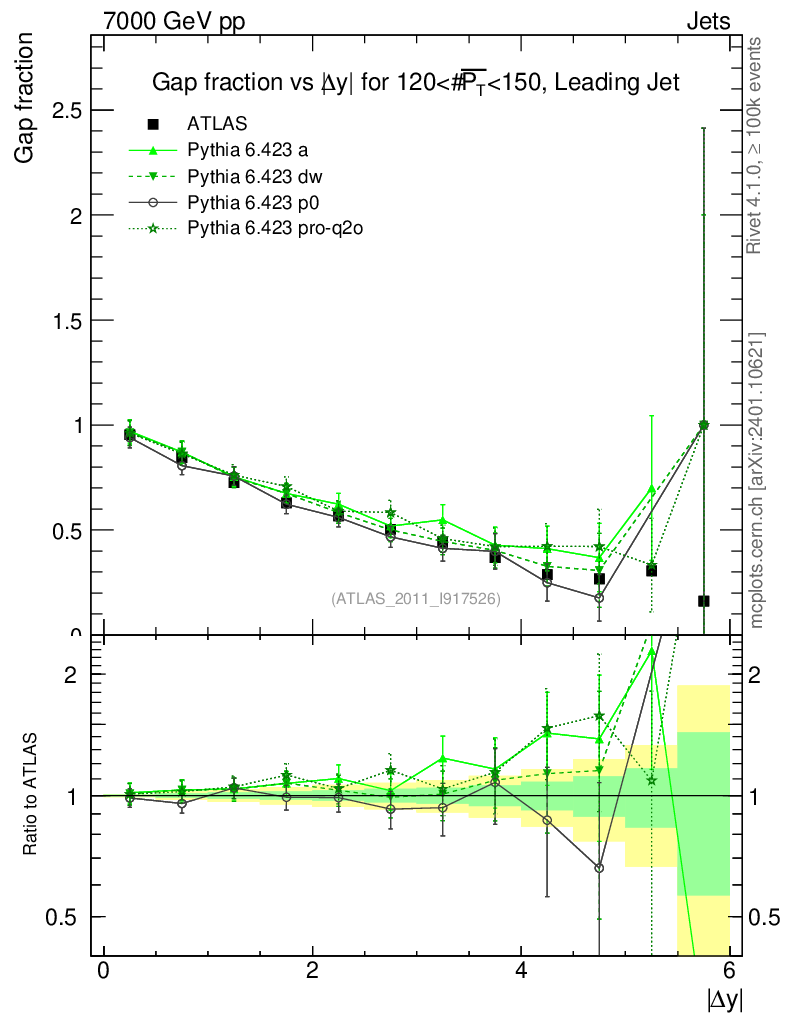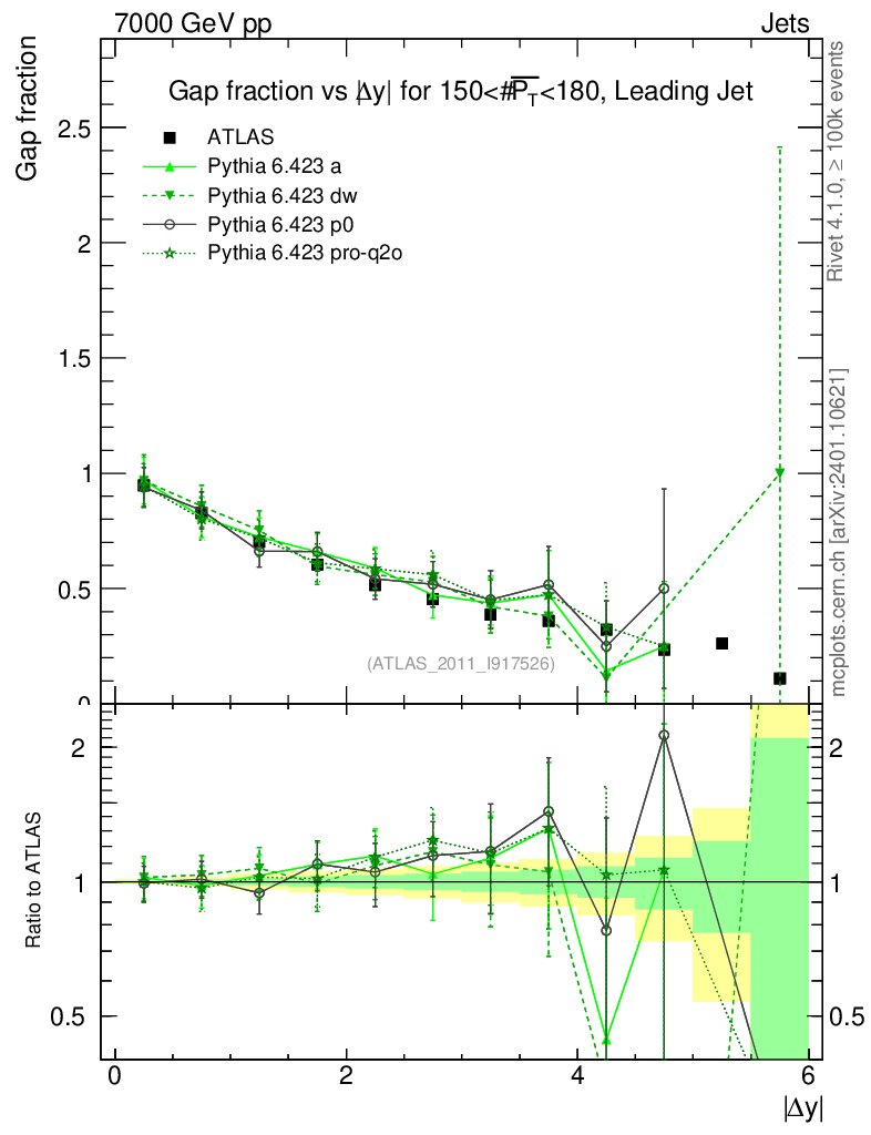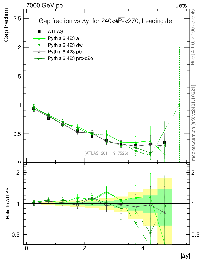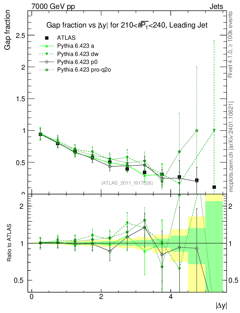 Jets : Jets + Veto : Gap fraction vs Δy (LJ)