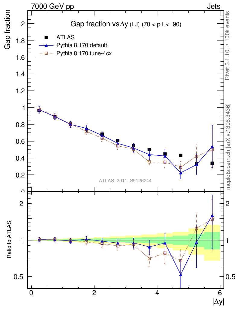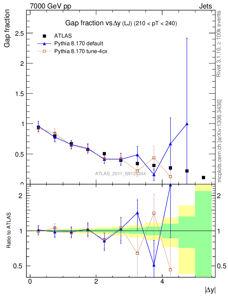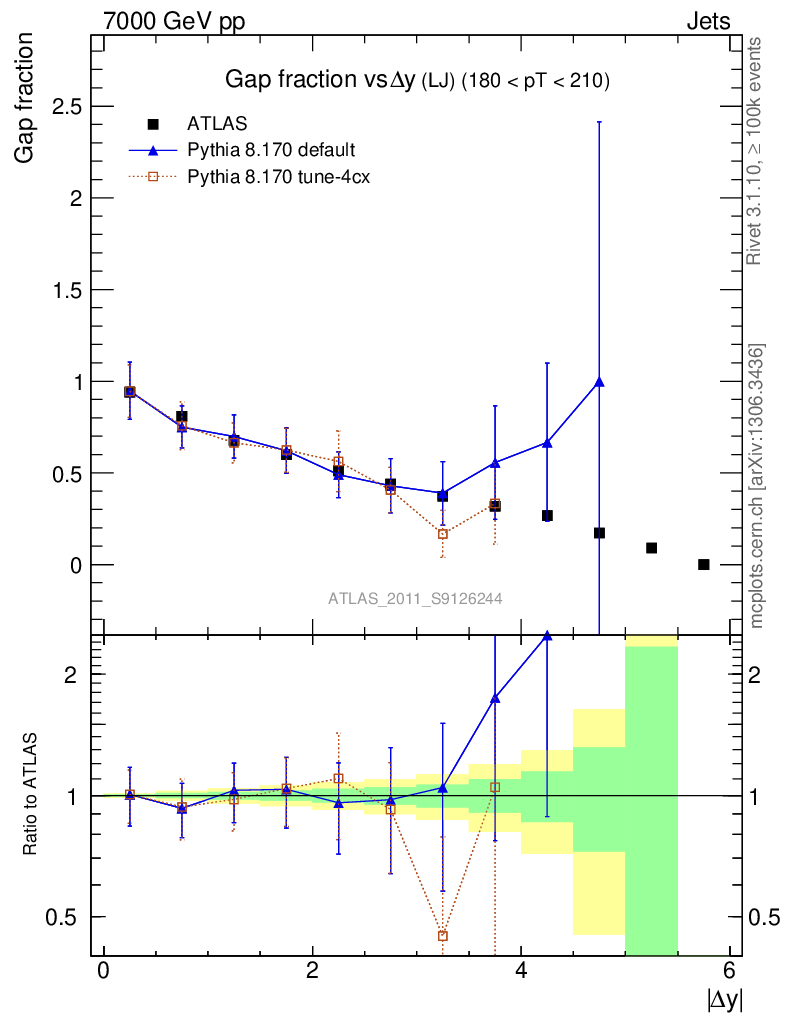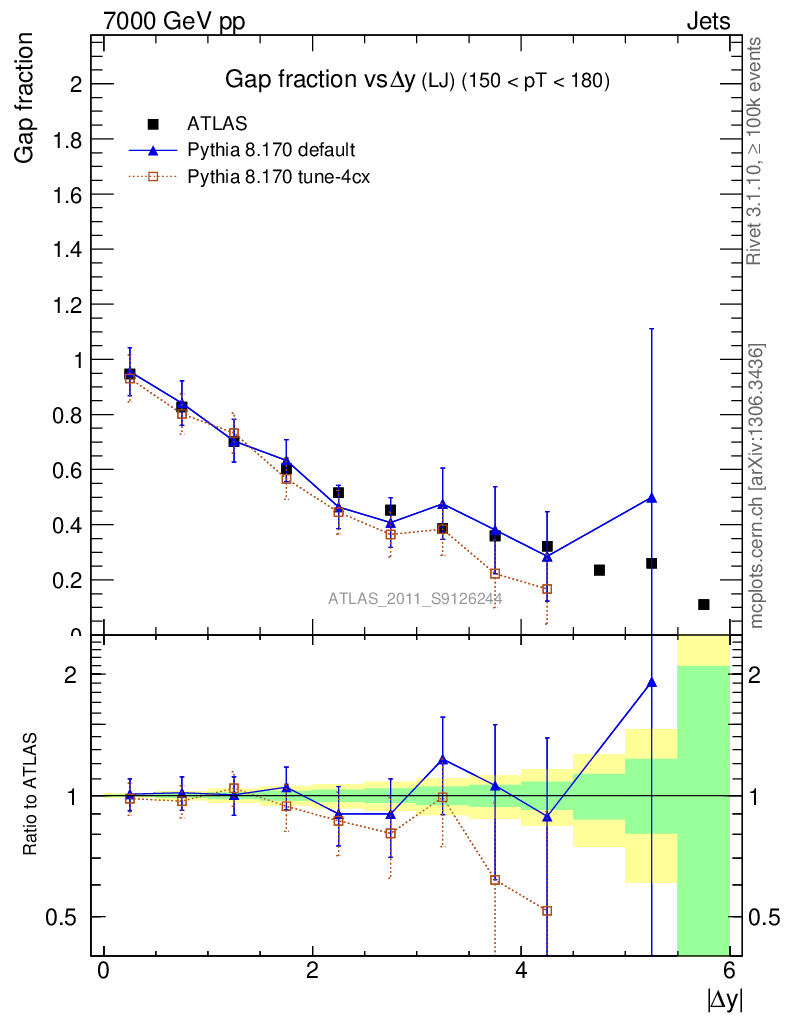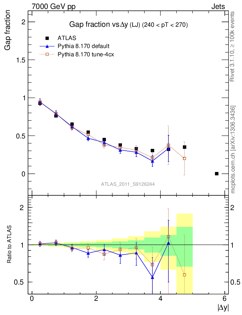 Jets : Jets + Veto : Gap fraction vs Δy (LJ)