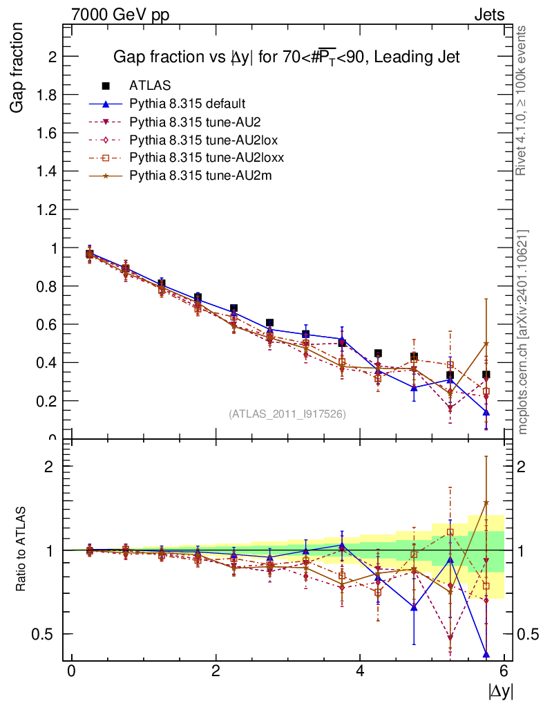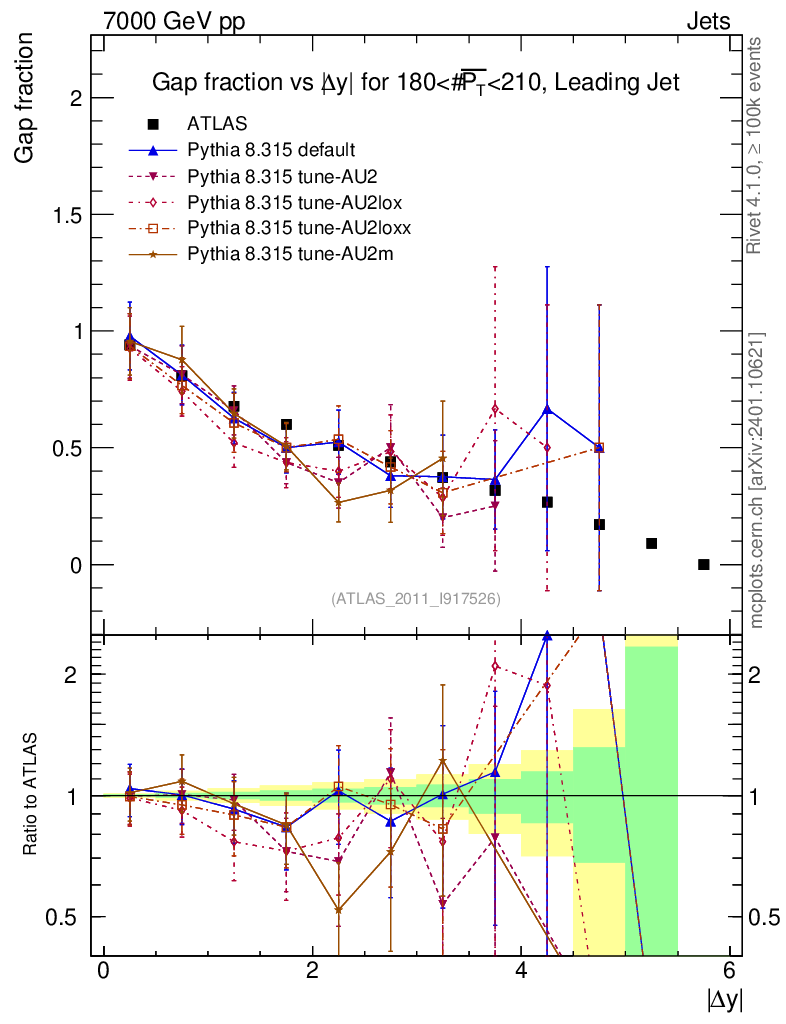 Jets : Jets + Veto : Gap fraction vs Δy (LJ)