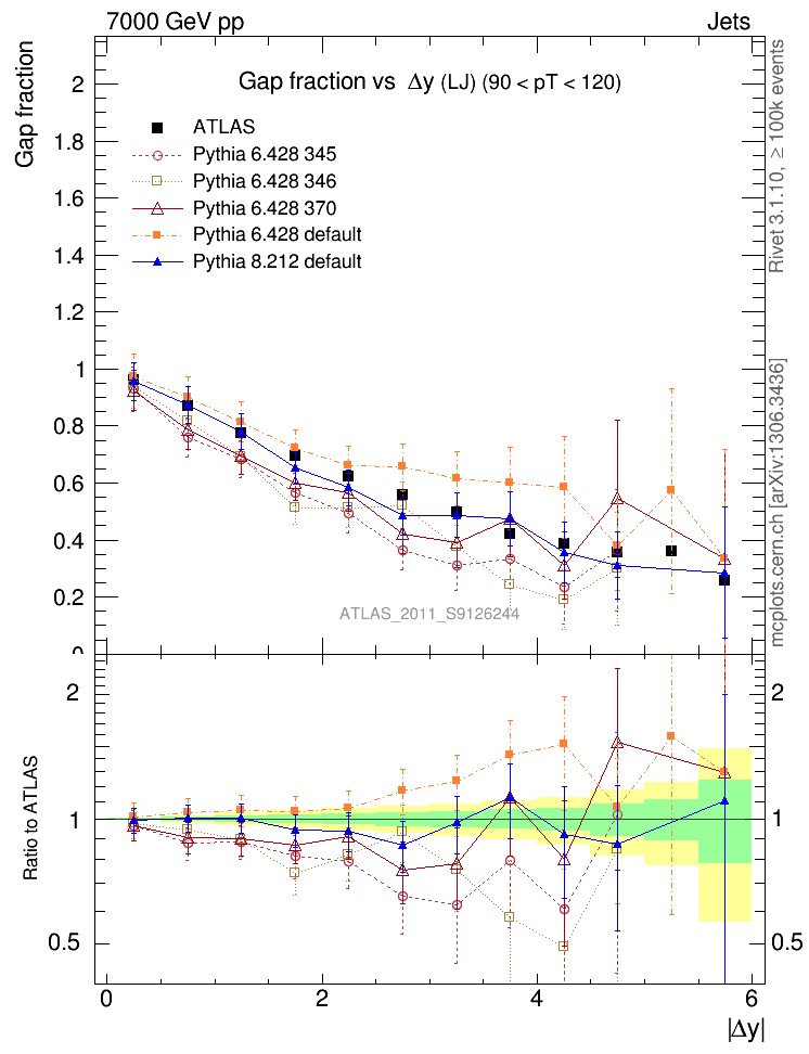 Jets : Jets + Veto : Gap fraction vs Δy (LJ)