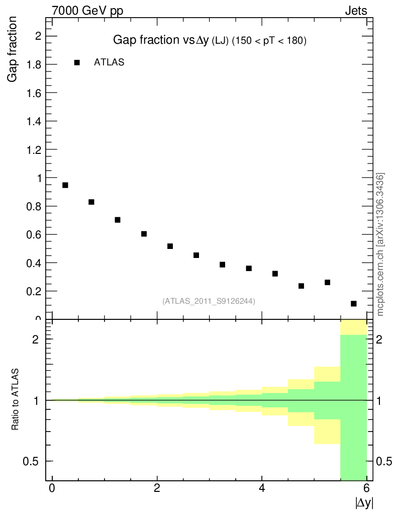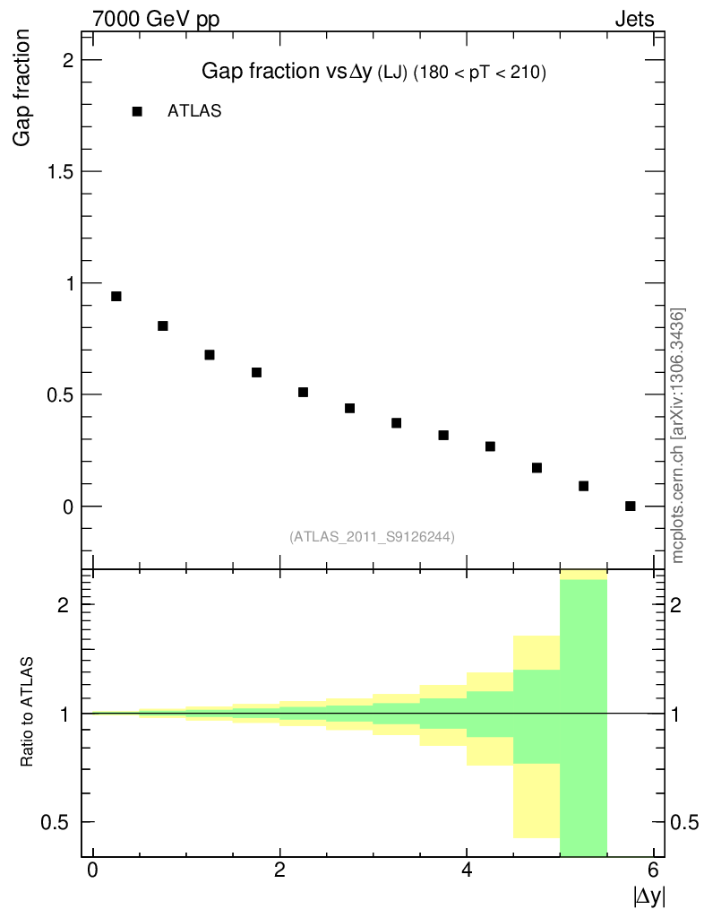 Jets : Jets + Veto : Gap fraction vs Δy (LJ)