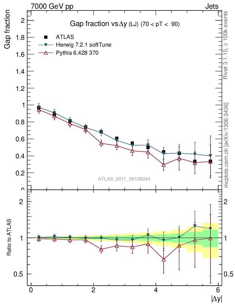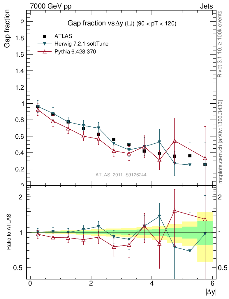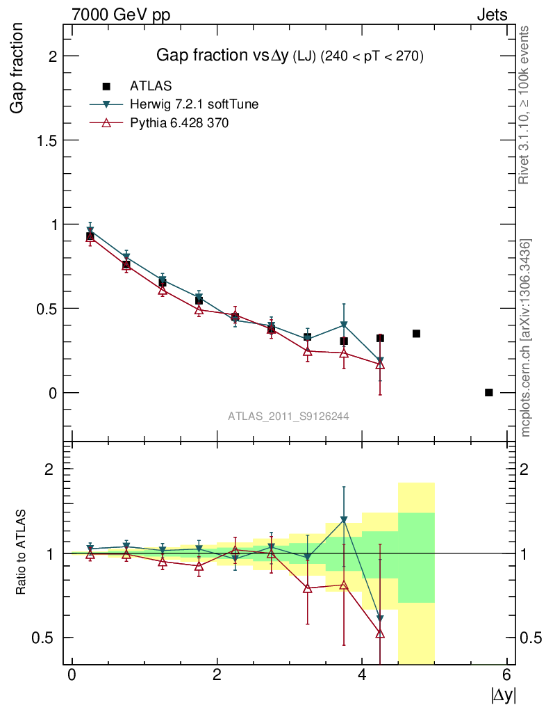 Jets : Jets + Veto : Gap fraction vs Δy (LJ)