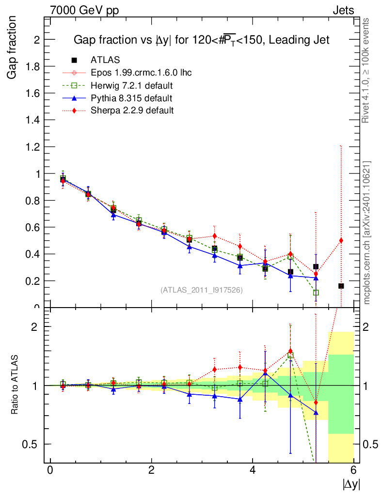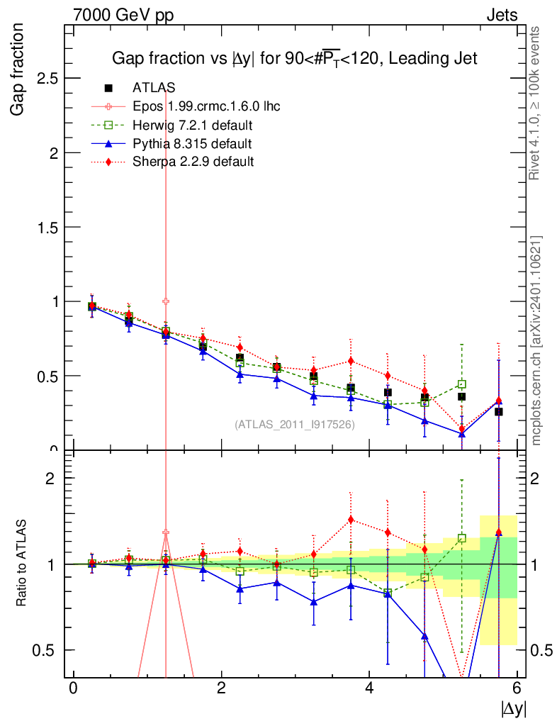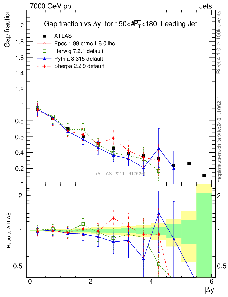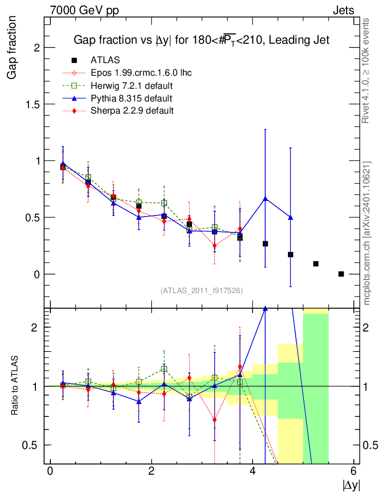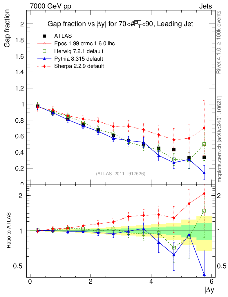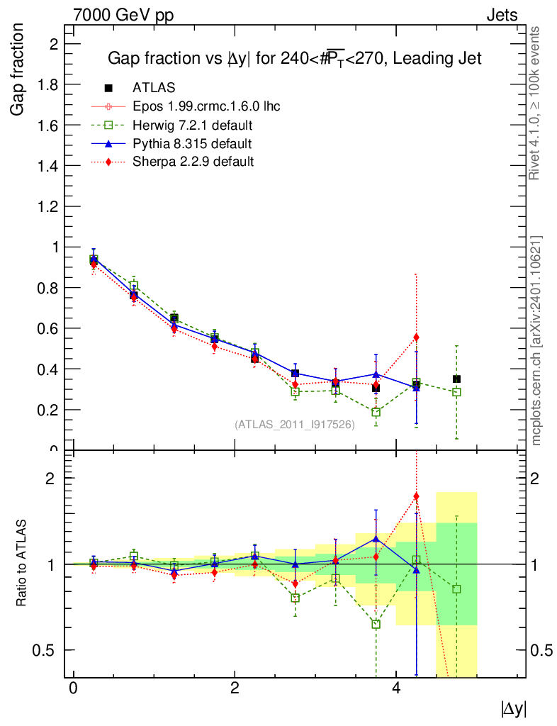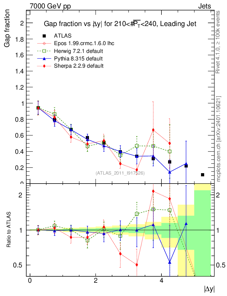Jets : Jets + Veto : Gap fraction vs Δy (LJ)