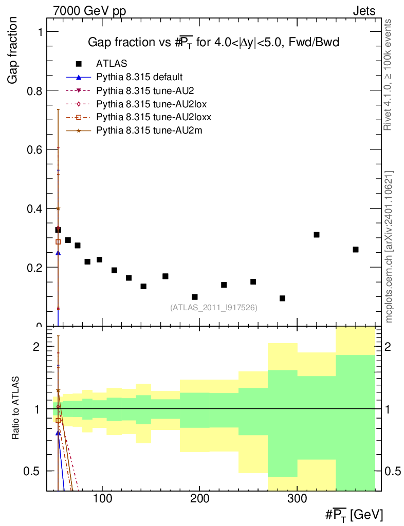 Jets : Jets + Veto : Gap fraction vs pT (FB)