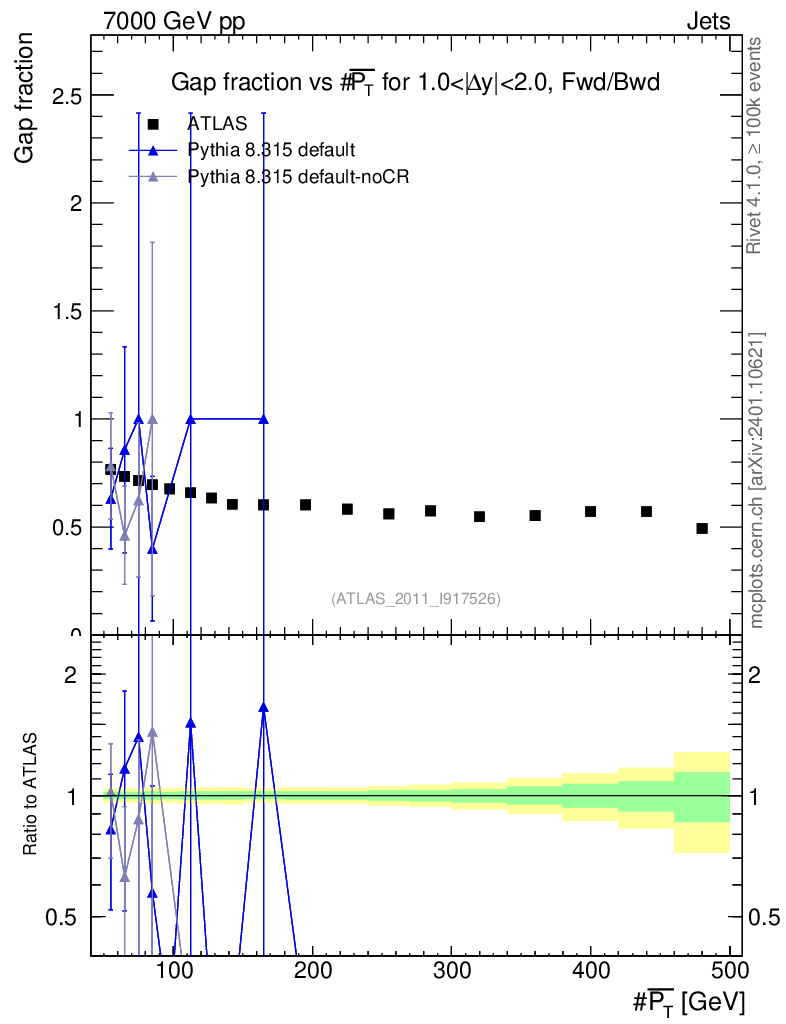 Jets : Jets + Veto : Gap fraction vs pT (FB)