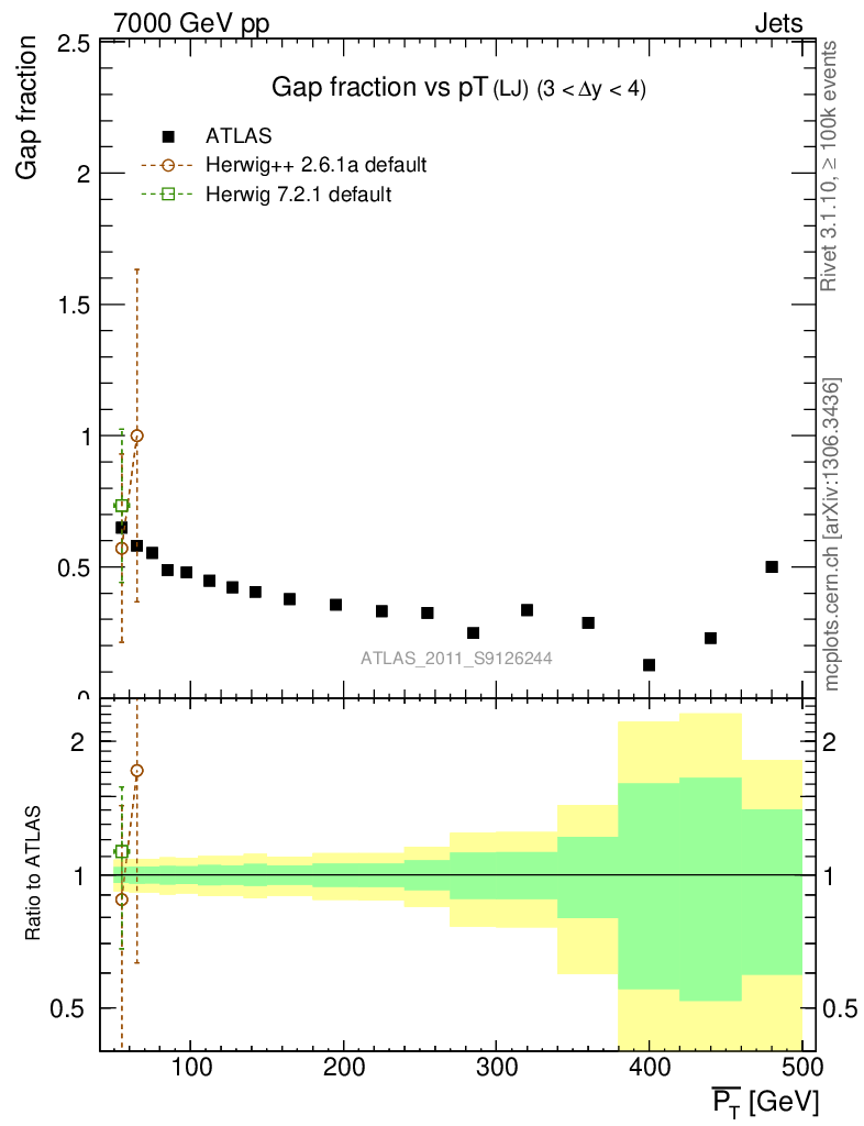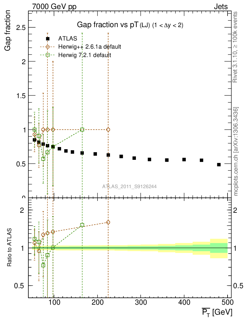 Jets : Jets + Veto : Gap fraction vs pT (LJ)