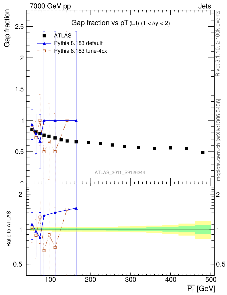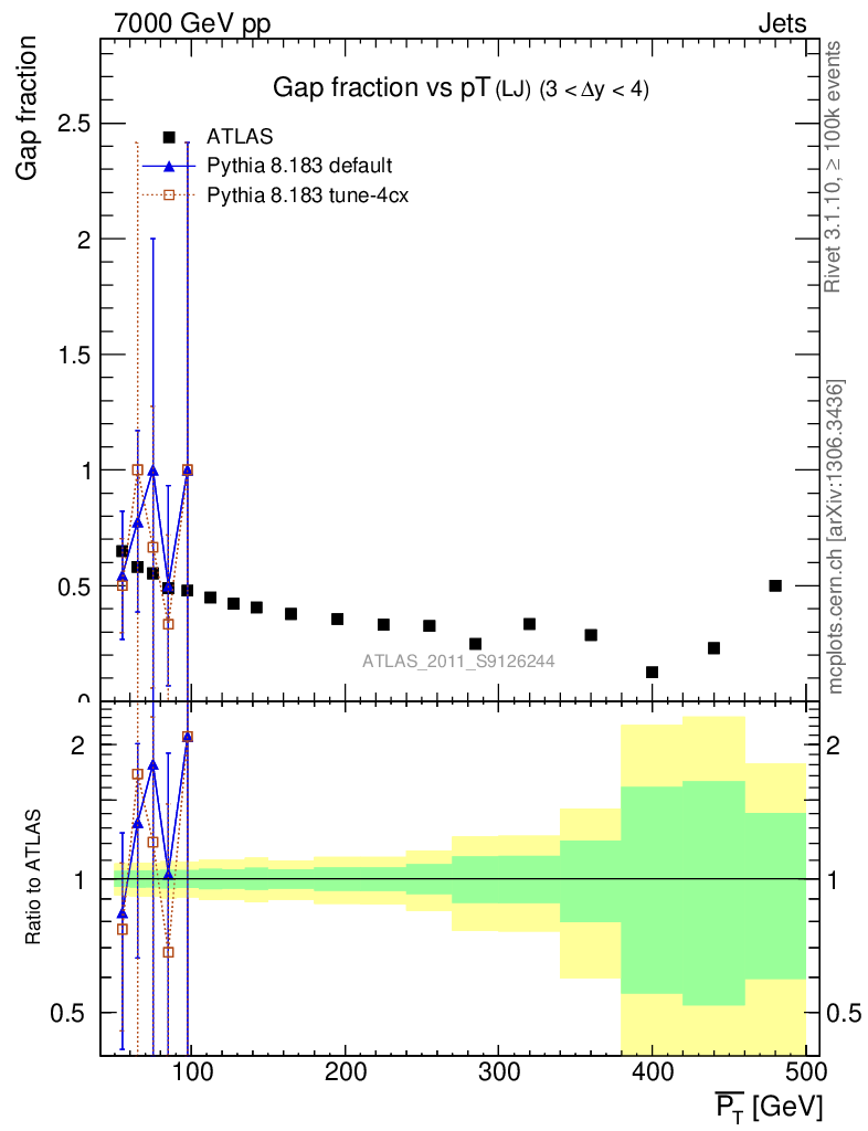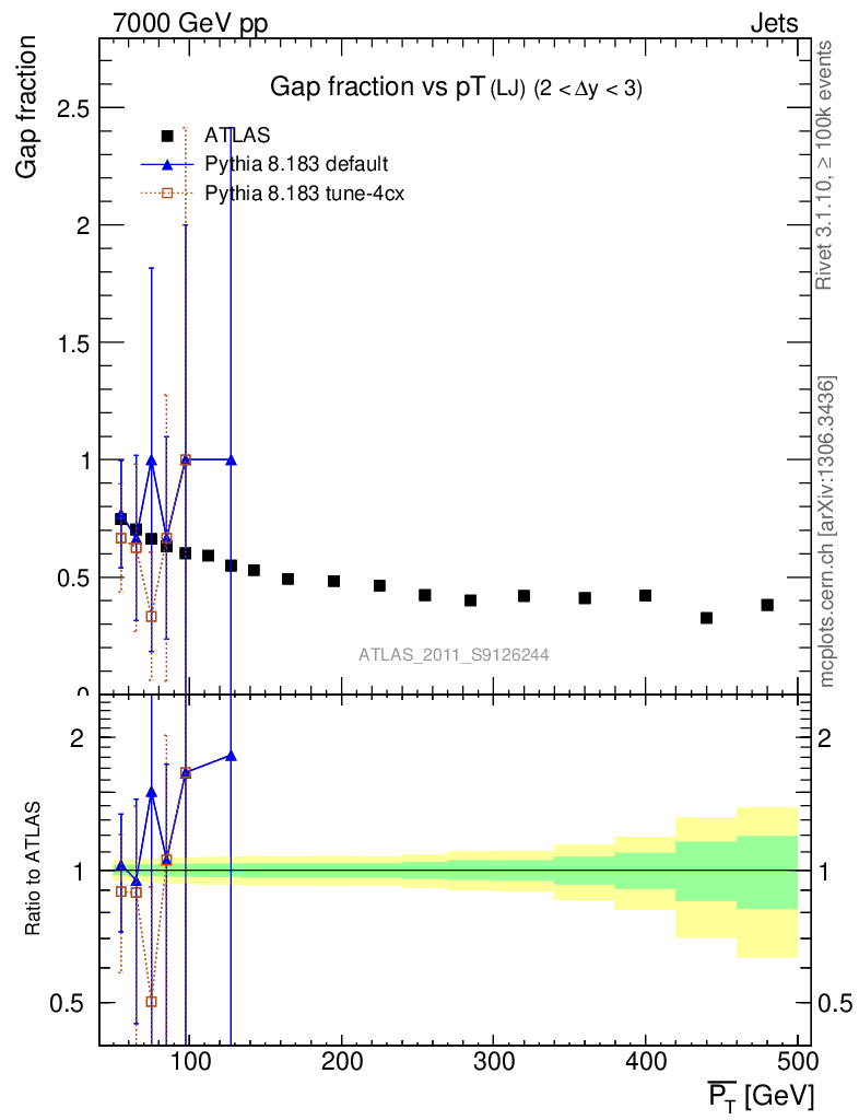 Jets : Jets + Veto : Gap fraction vs pT (LJ)