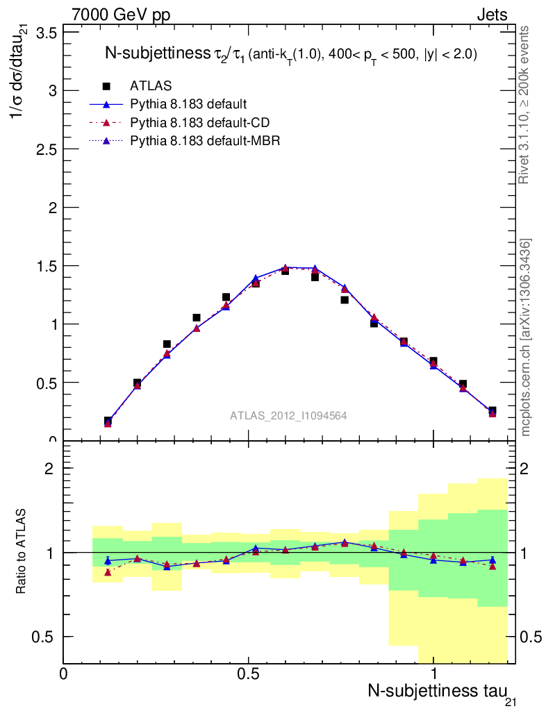 Jets : Jet Substructure : N-subjettiness τ2/τ1